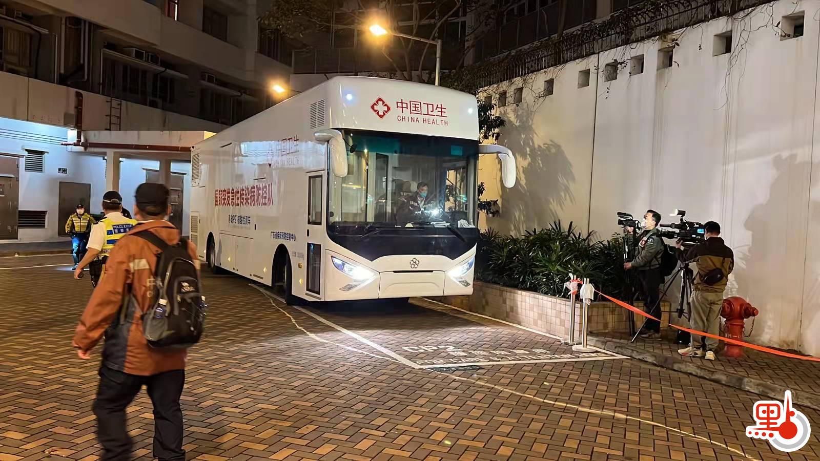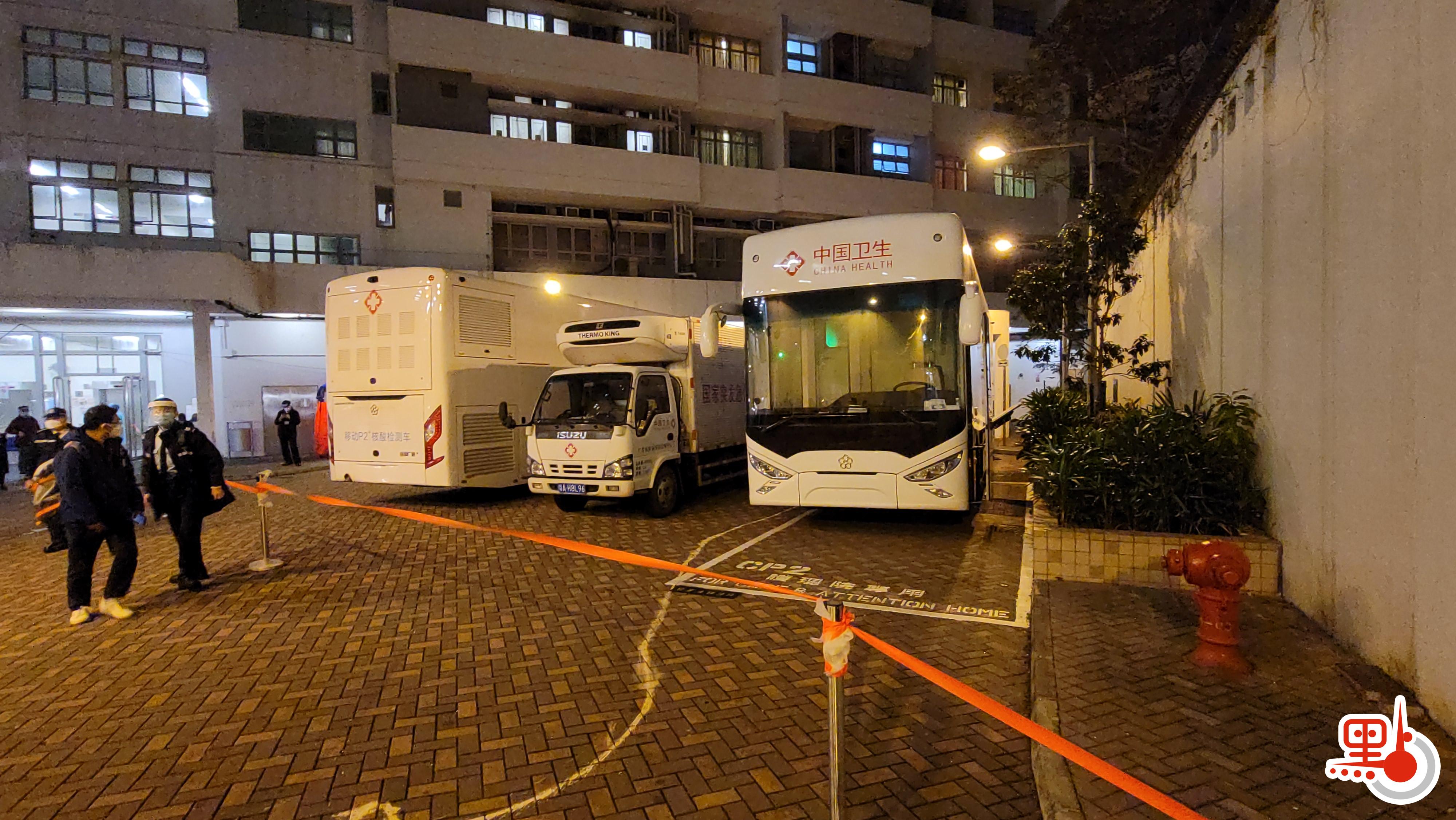 內地昨日派出首批支援香港抗疫的流行病學專家組及移動核酸檢測車來港,2輛移動P2+核酸檢測車通過深圳灣口岸抵港。今日(18日)晚7時起,政府圍封深水埗石硤尾邨第21座進行強檢,剛到埗的移動核酸檢測車到場協助,首次支援香港本地的圍封行動。