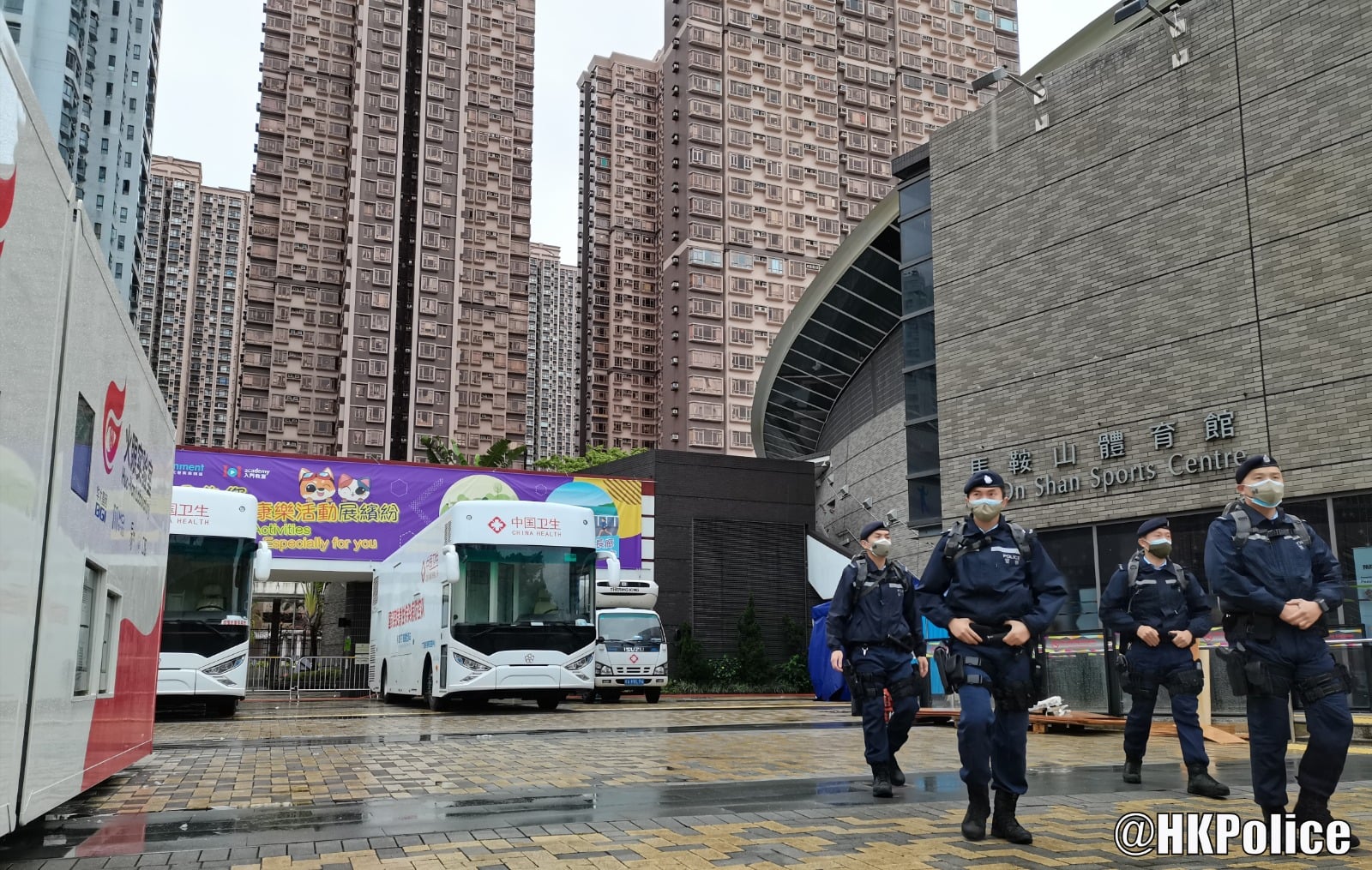 警方表示,反恐特勤隊會在各區檢測設施進行不定時的高姿態反恐巡邏,在維持社會秩序及治安的同時,與前線人員攜手確保抗疫檢測工作得以順利進行。警方強調,警隊上下會繼續同心協力堅守崗位,守護我城!