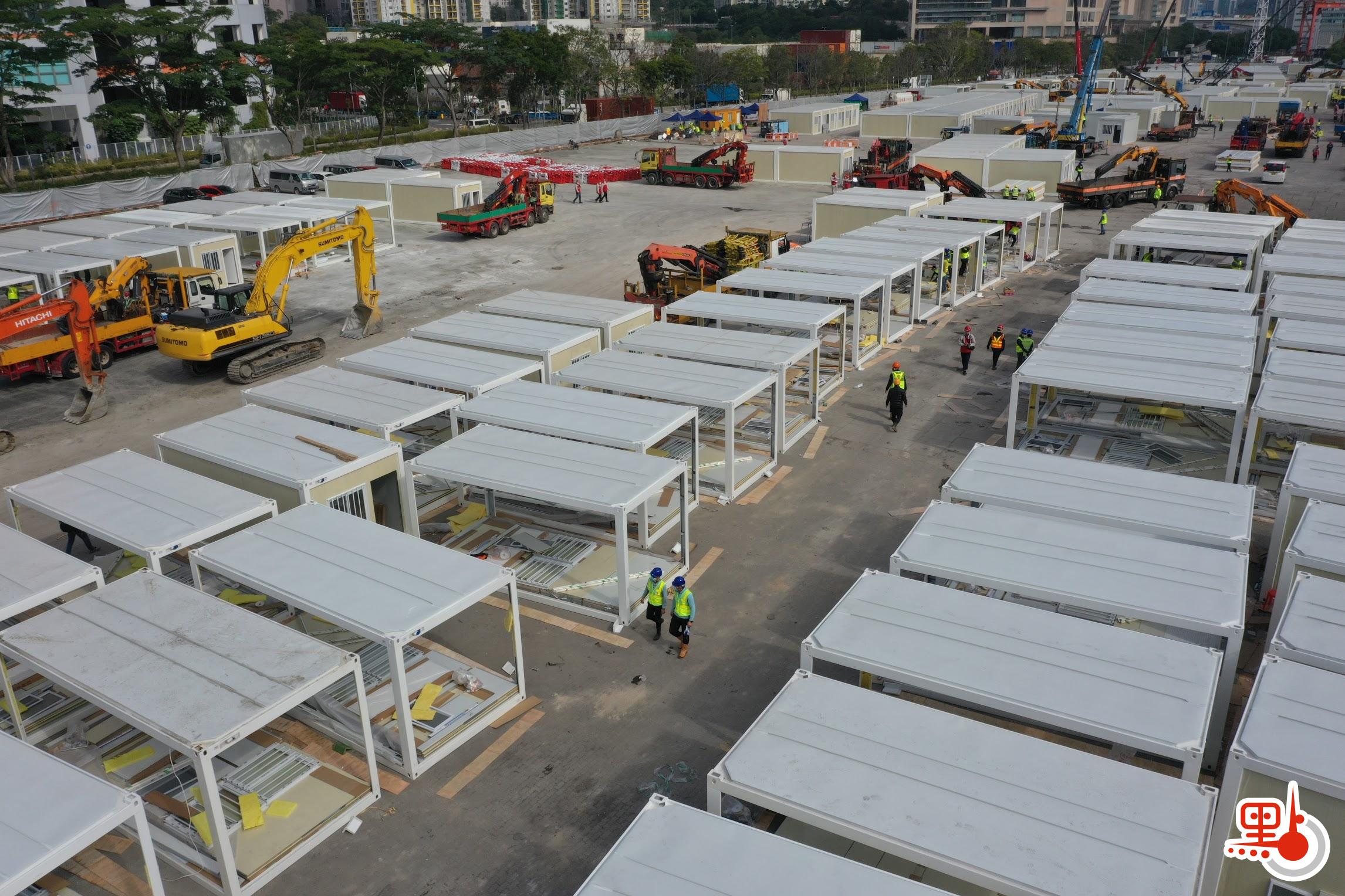黃偉綸說,2月19日,竹嵩灣和啟德前跑道區的建設項目率先啟動,建設可提供共約2萬個床位的社區隔離及治療設施。至於其他六個地點,特區政府也隨即在2月21日至23日移交予中國建築進場,以興建共約2萬個床位的設施。上述八個項目由特區政府負責建設費用,而建築署在2月24日就興建社區隔離及治療設施與中國建築國際集團簽署了合作協議。他說:「開展這些應對疫情急需的建設項目的速度之快,可謂史無前例。」