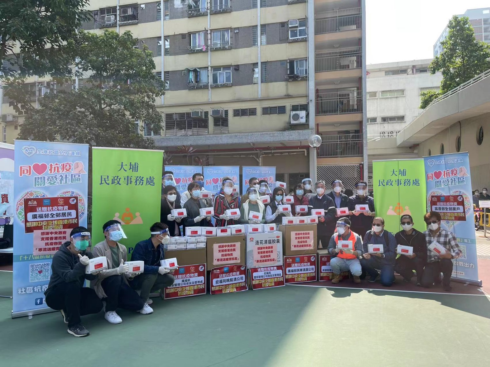 北區抗疫連線邀請北區民政專員莊永桓,立法會議員劉國勳,新社聯北區地委副主席潘孝汶及鄧道昆,民建聯北區支部主席姚銘等代表,與私人屋苑皇府山管業處、公屋天平邨居民福利會及居屋雍盛法團等合作派發。