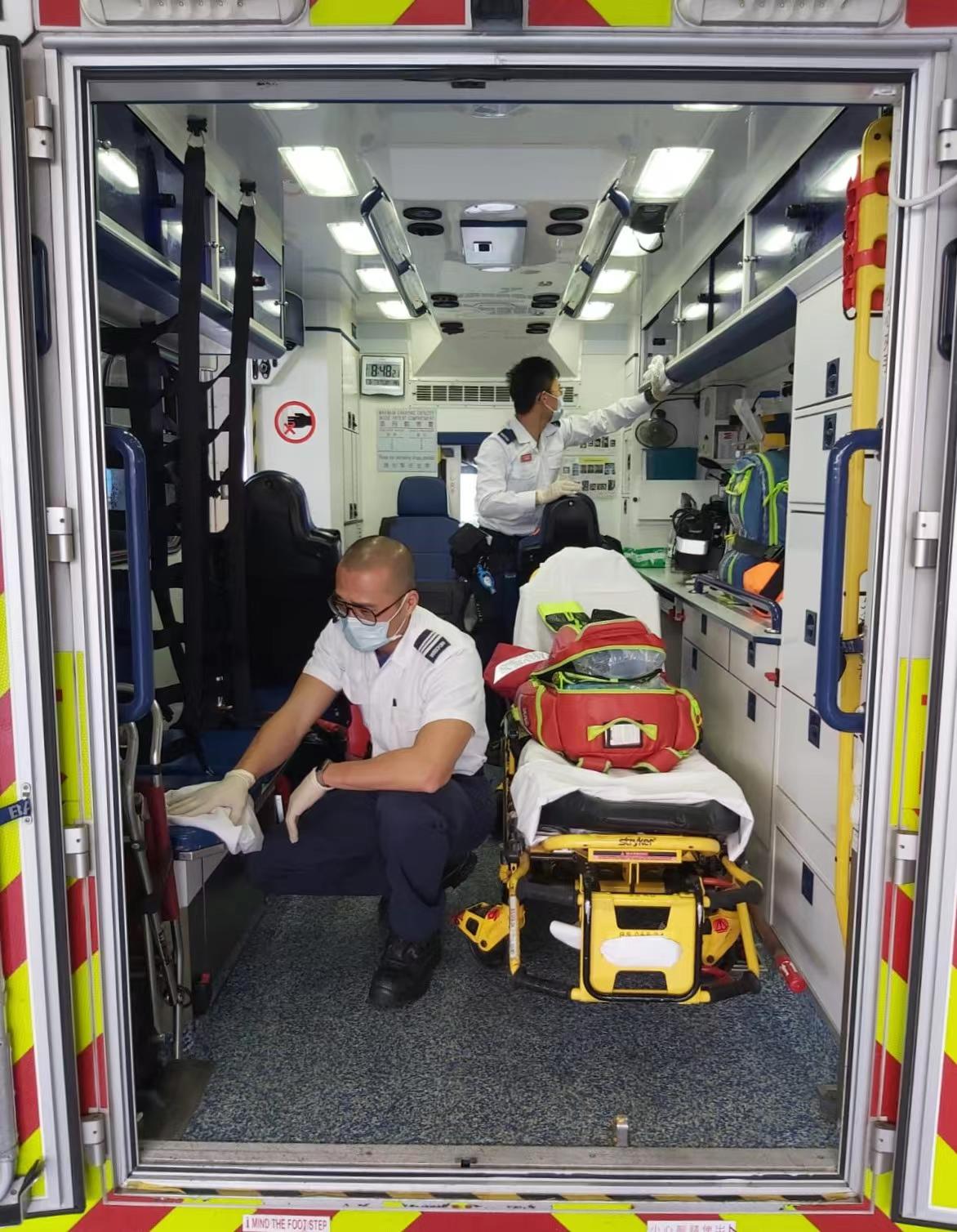 消防處救護總隊目張博榮為曾經確診的救護人員,一度需暫時「退下火線」,現已康復,並已趕不及待重返救護車工作,繼續負責接送病人前往醫院。張博榮憶述:「我上月19日做深喉唾液核酸測試呈陽性,知道自己確診後真的很不開心。一方面患病時即使症狀輕微,身體狀態良好,都不能去幫手,白白看着其他兄弟同事辛苦,另一方面是太多確診病人需要我們,少一個人就少一份力量來打敗疫情。」