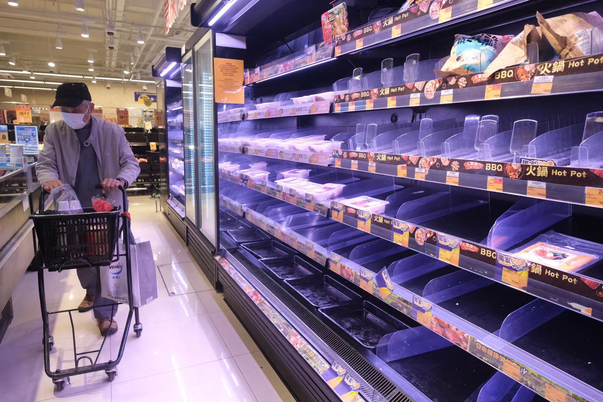 本港第五波疫情嚴峻,不少市民紛紛搶購食物及退燒藥品,近日多間超市貨架被搶購一空,退燒止痛藥品更是極度緊缺。