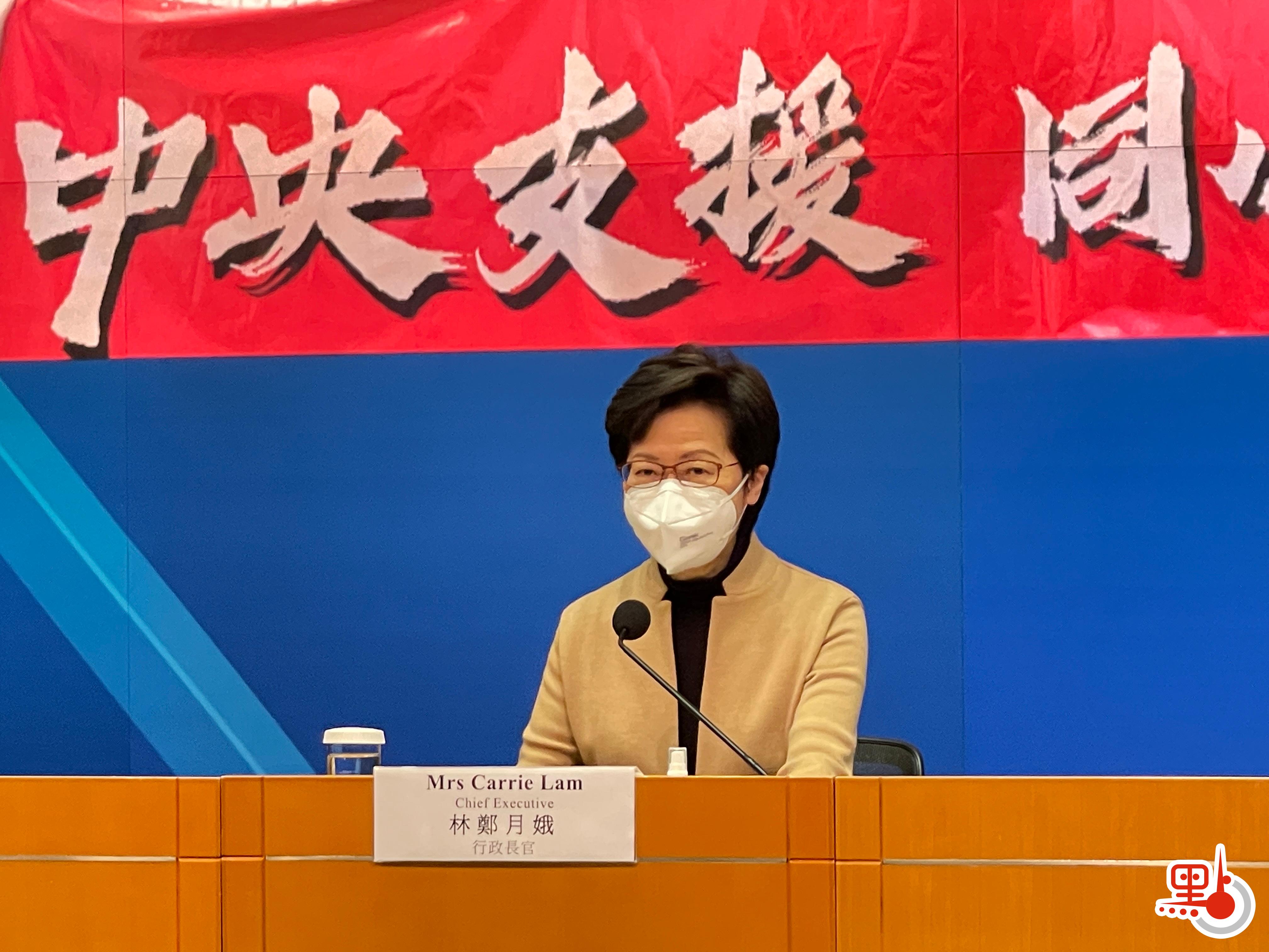 林鄭月娥指出,今次政府徵用三座未入伙的公屋作隔離,涉及3400單位;政府徵用30多間酒店作社區隔離設施,目前有18個已投入服務,提供約1.5萬個酒店房間;政府提供過渡性房屋約2500個單位,將患者隔離。