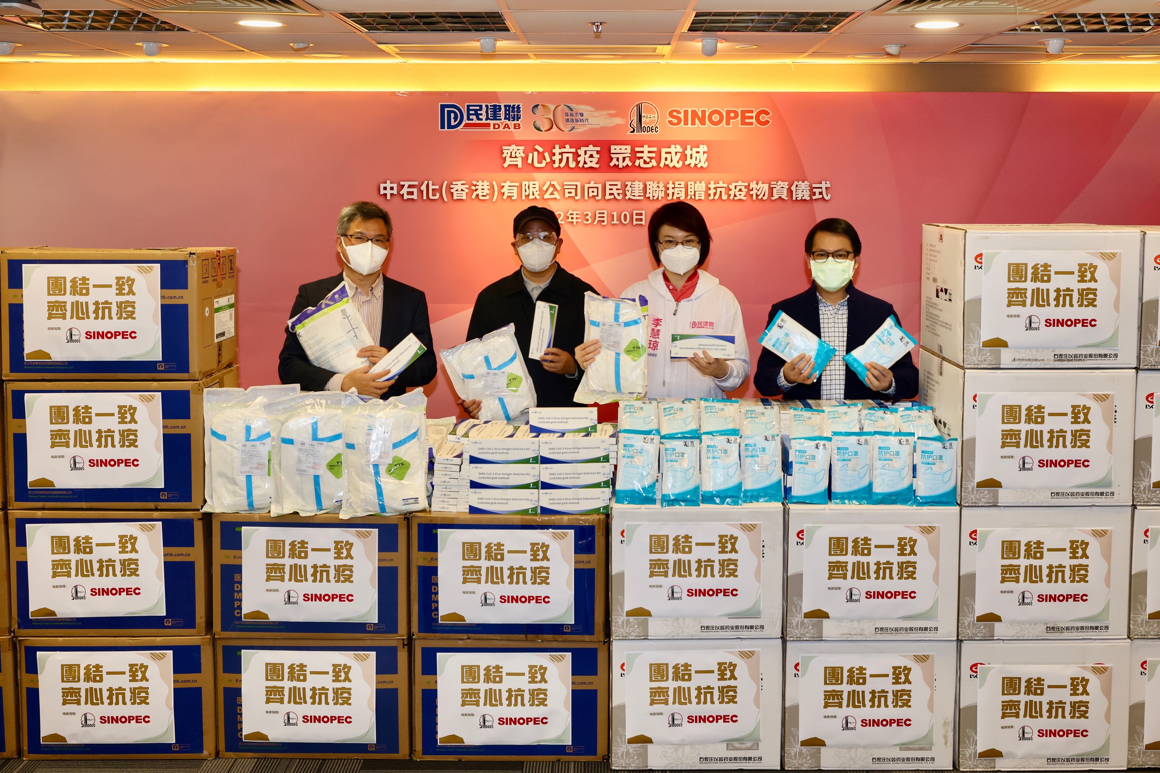 民建聯主席李慧琼表示,民建聯會全力以赴抗擊疫情,走在抗疫最前線,盡力協助市民渡過當前難關。近日有不少市民均提出希望得到藥品的急切需求,中石化香港這次捐贈的藥品和物質,雪中送炭,對民建聯協助抗擊疫情有莫大的裨益,對中石化表示衷心感謝。副主席陳克勤表示,民建聯將繼續向政府出謀獻策,改善抗疫安排,並會繼續動員更多市民參與抗疫工作。民建聯與全港市民站在一起,齊心抗疫,爭取早日戰勝疫情。