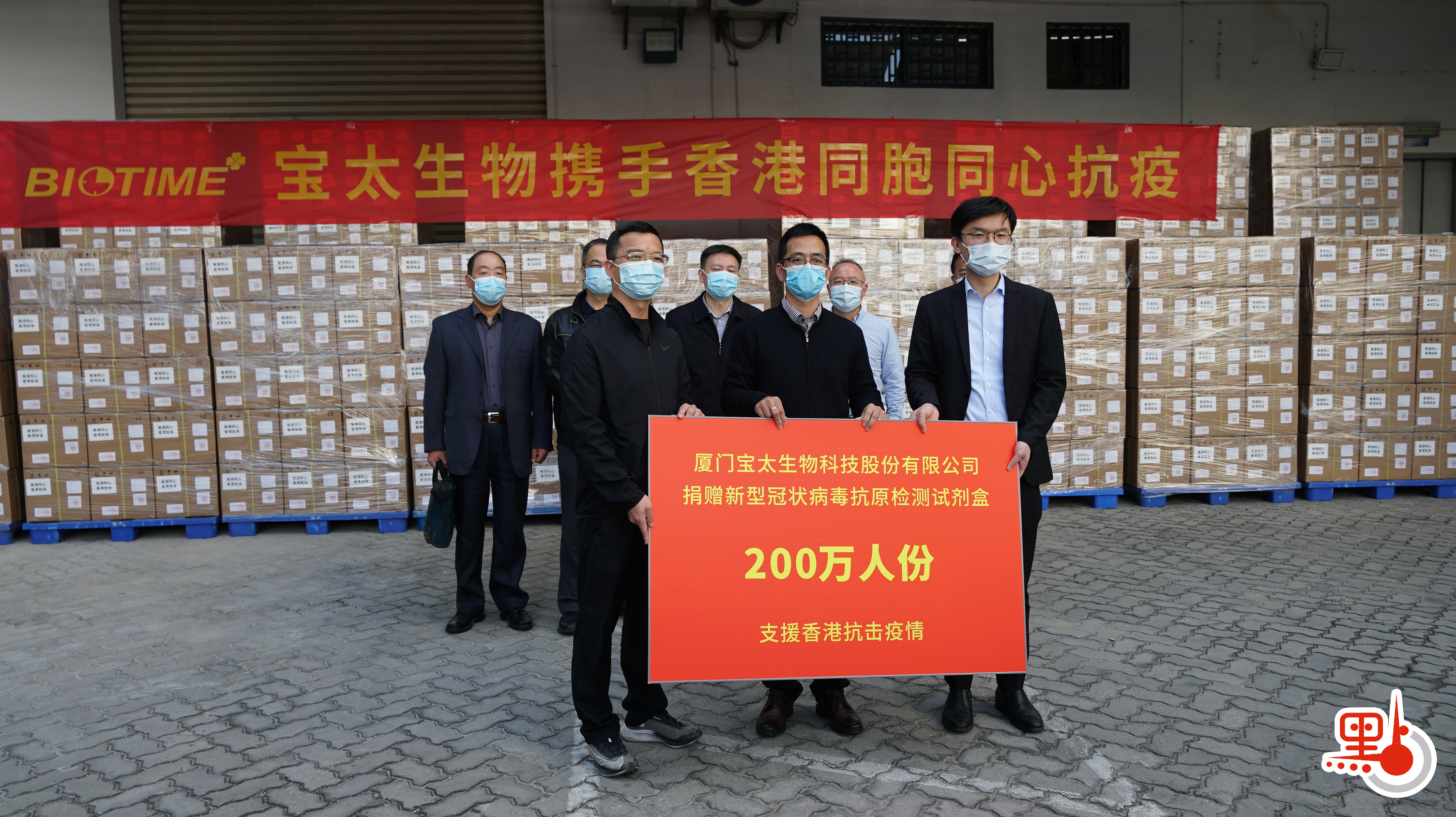 昨日(10日)下午,福建省廈門寶太生物科技股份有限公司(寶太生物)向香港捐贈200萬人份新冠病毒抗原檢測試劑盒。該次捐贈將分兩批次運送到港,今日啟運第一批次100萬人份並於下周一抵港。寶太生物運營副總黃建國告訴記者,考慮香港抗疫實際需求,該次捐贈的新冠病毒抗原檢測試劑將助力香港快速篩查感染人群,控制疫情,幫助香港同胞紓危解困。