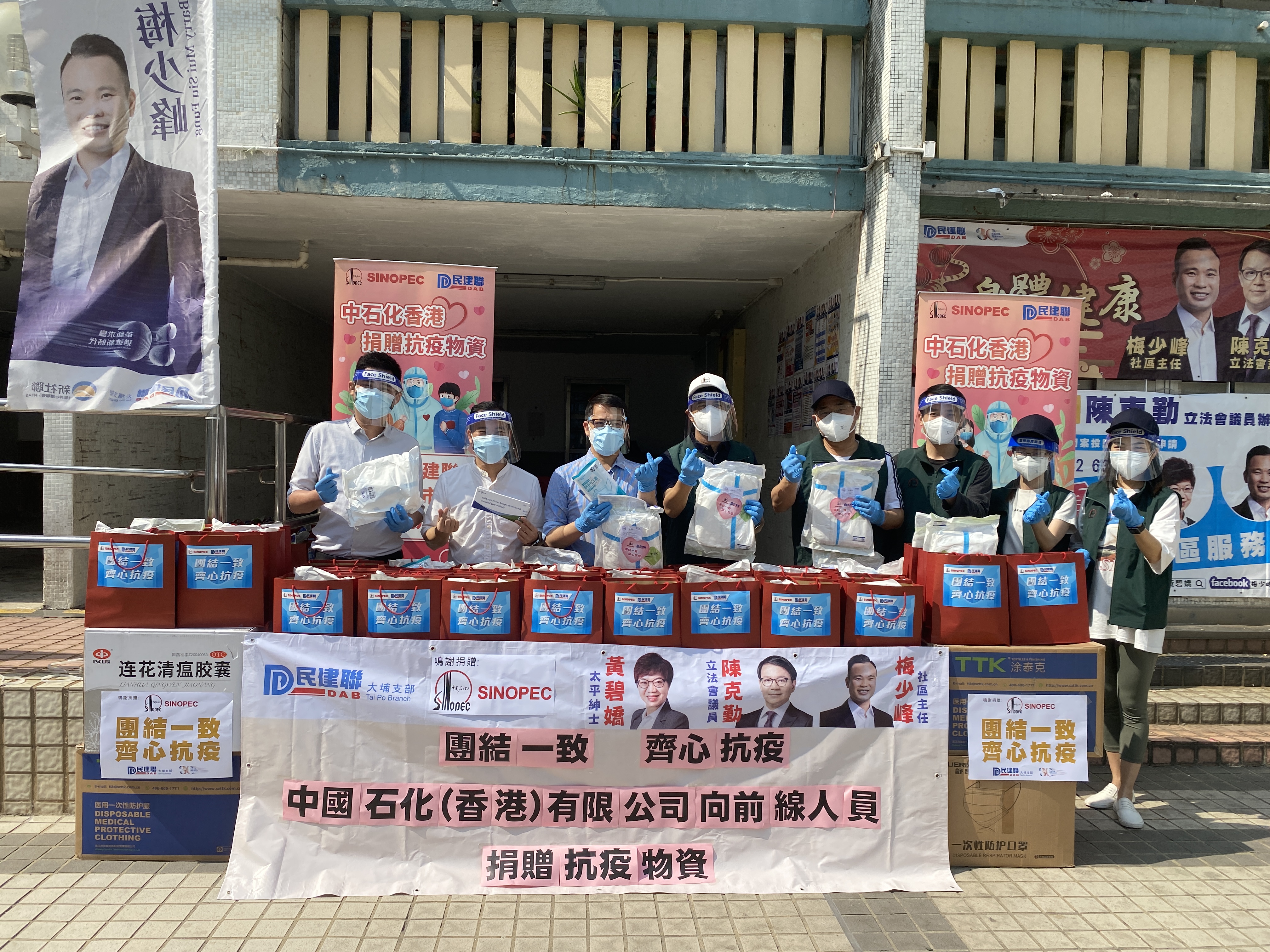 上周,中石化捐贈60000盒防疫藥品、6000套高等級醫用防護服,30000個外科專用口罩及3000個快速檢測盒,總價值約200萬港元的物資給民建聯,希望與市民一道守望相助、共克時艱,為香港市民加油鼓勁。