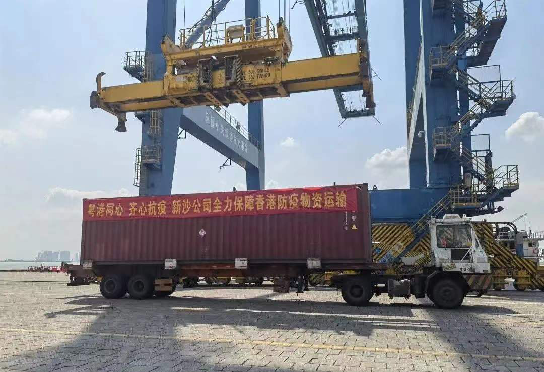 同時,廣州港新沙港區接到裝運計劃後立即統籌調度,優先安排,協調完成申報、裝卸、查驗和裝駁等工作,為援港防疫物資運輸提供有力保障,助力香港抗擊第五波疫情。