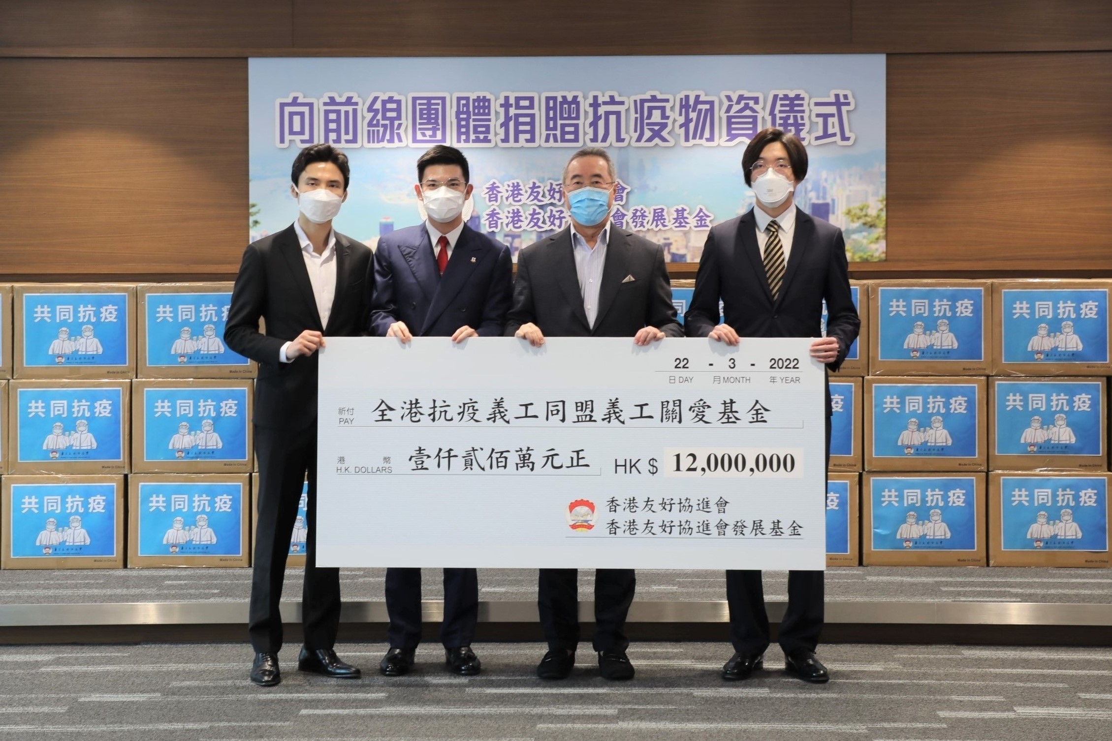 為表達對這些逆行義工人員的敬意和支持,香港友好協進會特向「全港抗疫義工同盟義工關愛基金」捐款1200萬港元。捐贈支票儀式今日(22日)上午在秘書處舉行。