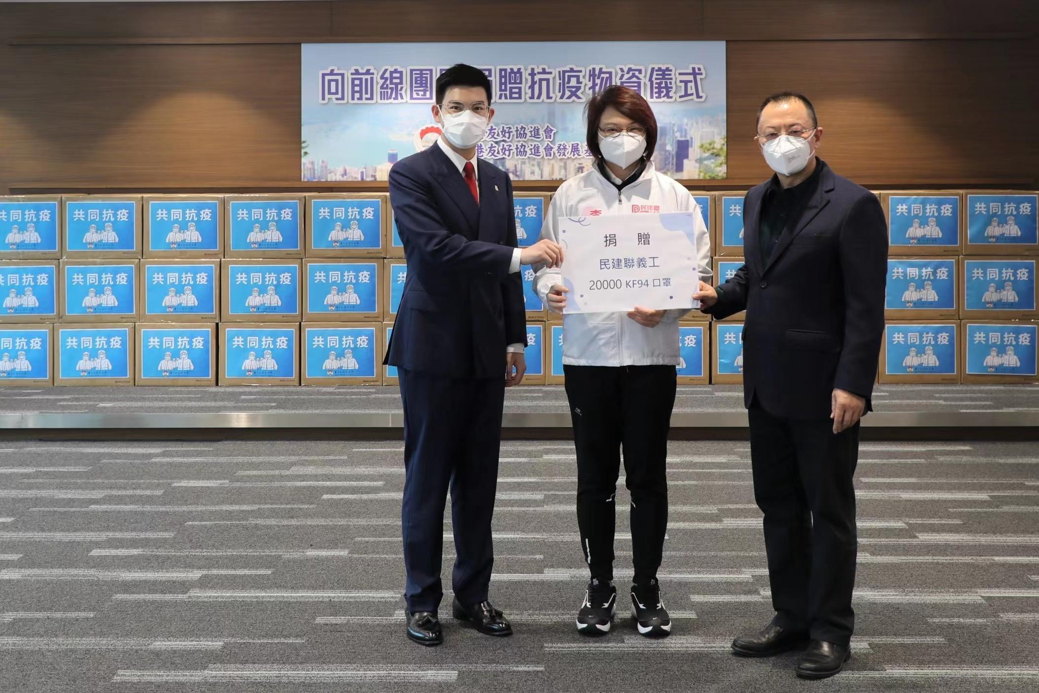 同日,香港友好協進會再向民建聯義工捐贈KF94口罩20000個。