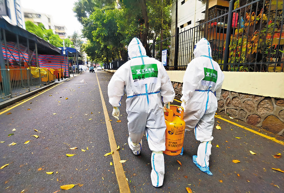 僅在龍崗區吉華街道,機關部門緊急動員僅保留最小辦公單位,調配了2,000名援助力量保障社區防控需求,守牢社區防控第一線。