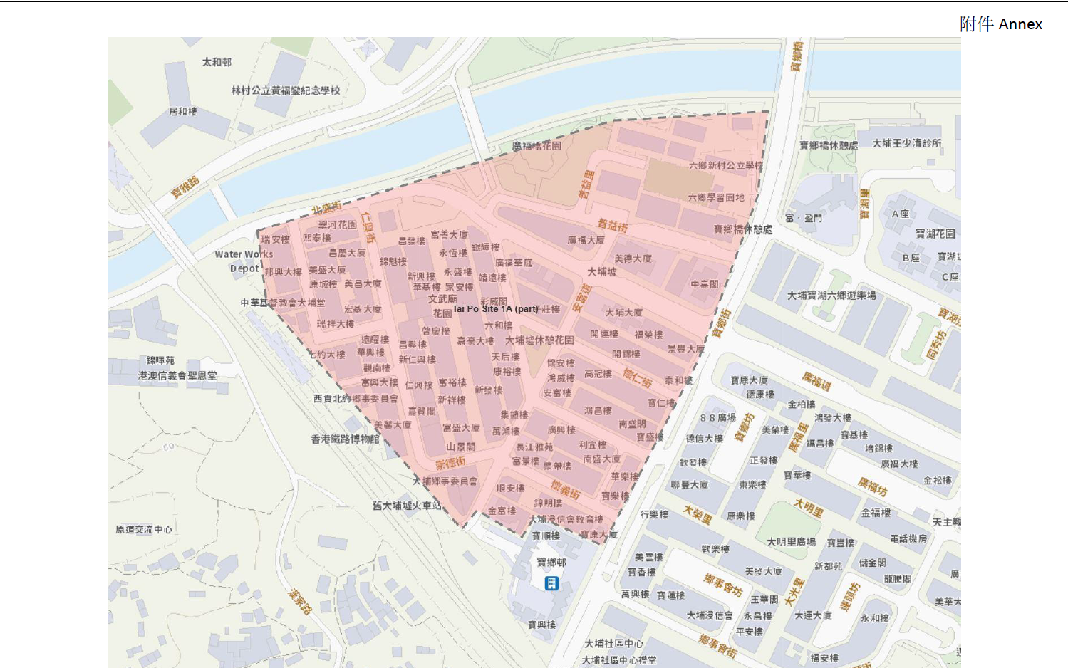 - 大埔區 — 宏福苑、寶鄉邨,安富道及仁興街附近一帶住宅