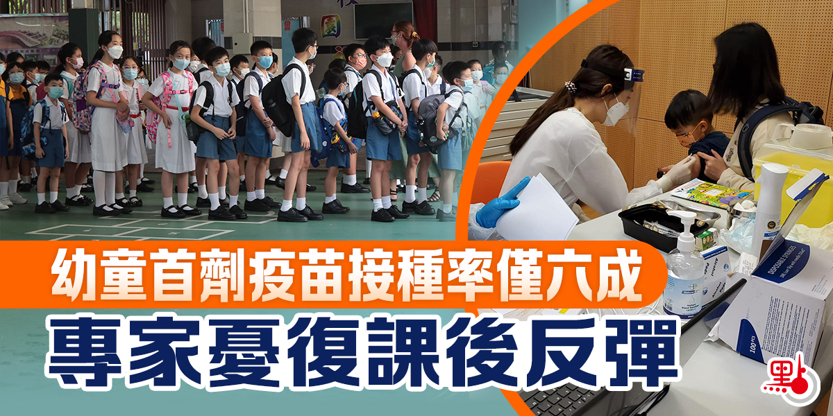 本港第五波疫情有緩和趨勢,全港學校將可恢復面授課堂,但目前3歲至11歲兒童的首劑疫苗接種率只有62%,香港特區行政長官林鄭月娥昨日(9日)在記者會上直言感到非常失望,表示進度緩慢,令人擔心,呼籲家長盡早為子女接種疫苗。有專家則擔心學童接種率不足,復課後會令疫情反彈,且強調兒童染疫後大腦發育會受影響,不能將新冠病毒視作感冒,呼籲家長讓學童接種,將這個年齡群組接種率推高至九成。