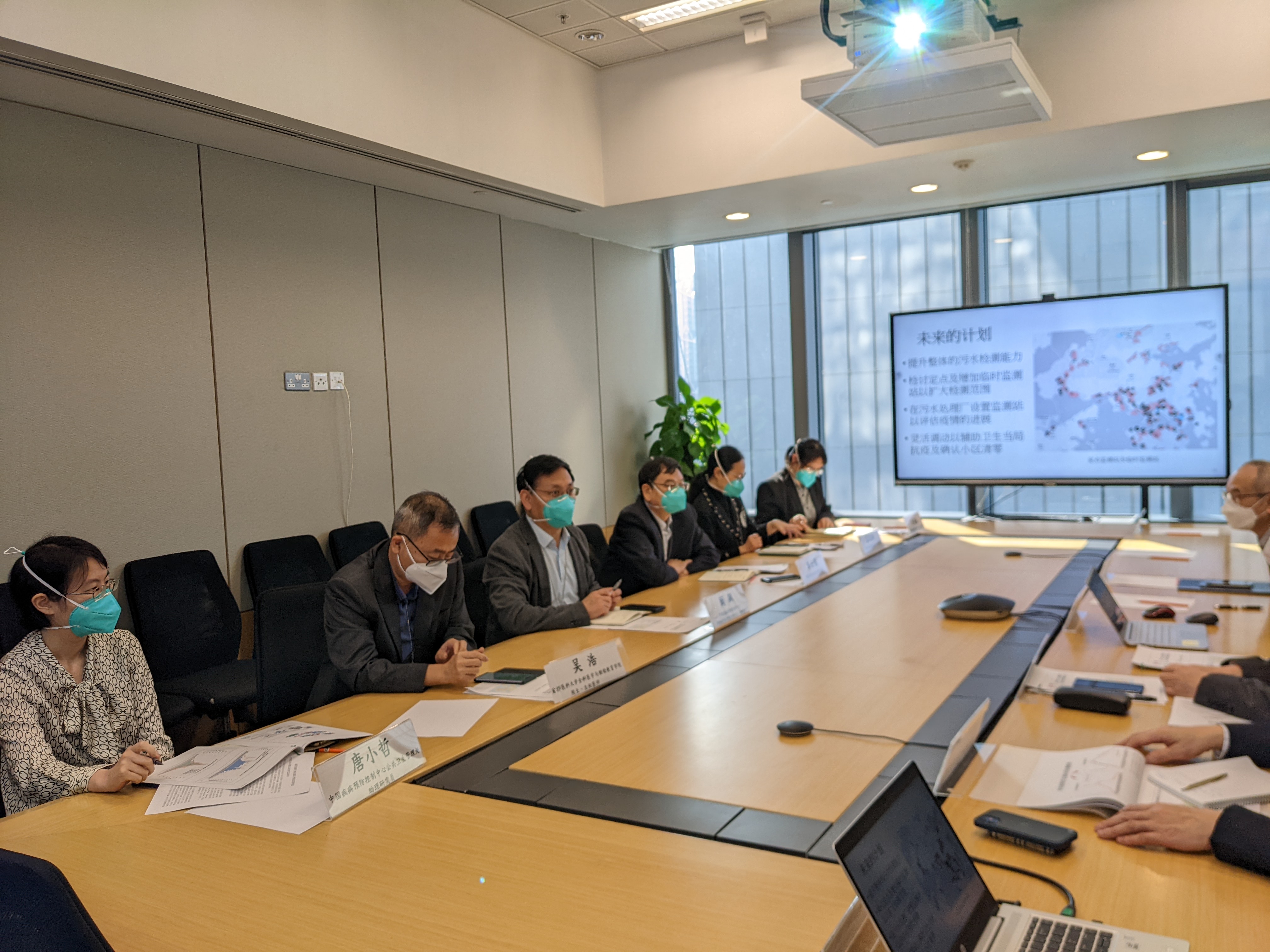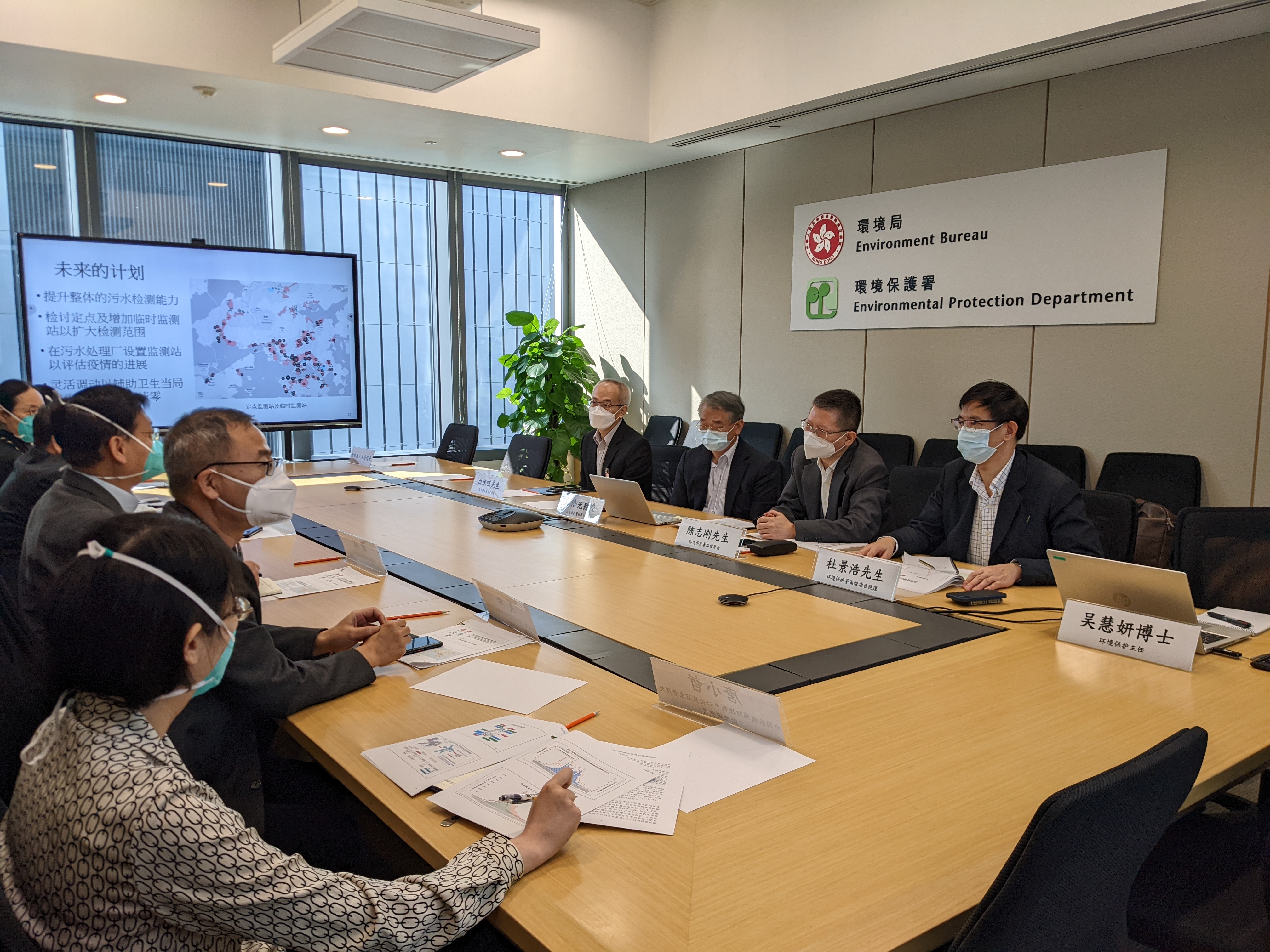 由中國疾病預防控制中心傳染病預防控制所所長闞飆率領的內地疫情防控專家組,昨日(14日)與環境保護署及渠務署就污水監測計劃進行技術交流及經驗分享會議。