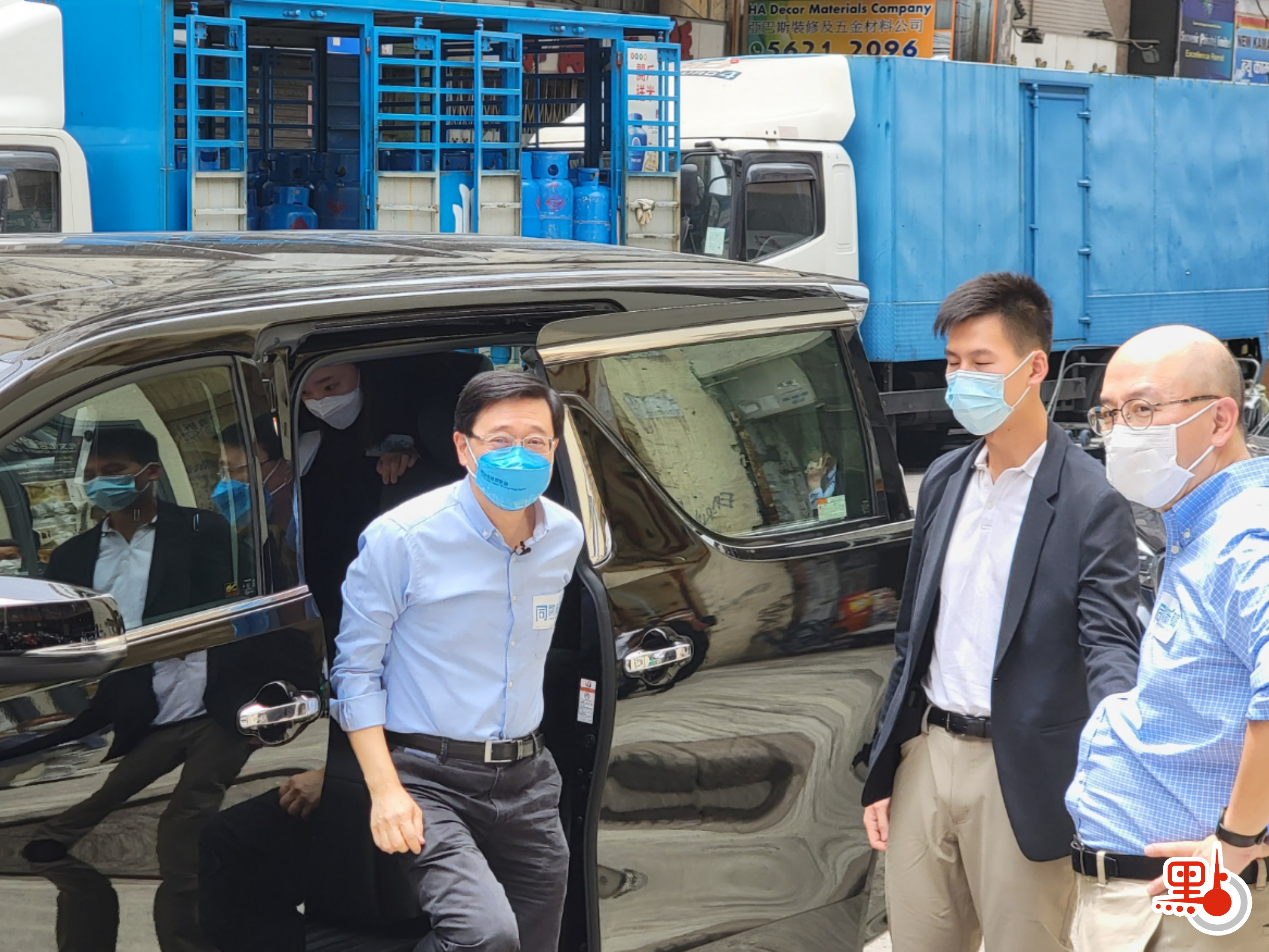 前政務司司長李家超早前宣布參選第六屆行政長官選舉,他表示,隨着社交措施放寬,已要求競選辦同事安排更多時間與社區接觸。李家超今早(24日)落區,先到窩打老道探訪基層家庭,之後前往油尖旺多元文化活動中心,會見新家園協會及少數族裔人士。從圖片可見,李家超在衣服上貼有「同開新篇章」字樣的貼紙,為他的競選口號,而他佩戴的口罩亦是「競選周邊」,十分吸睛。