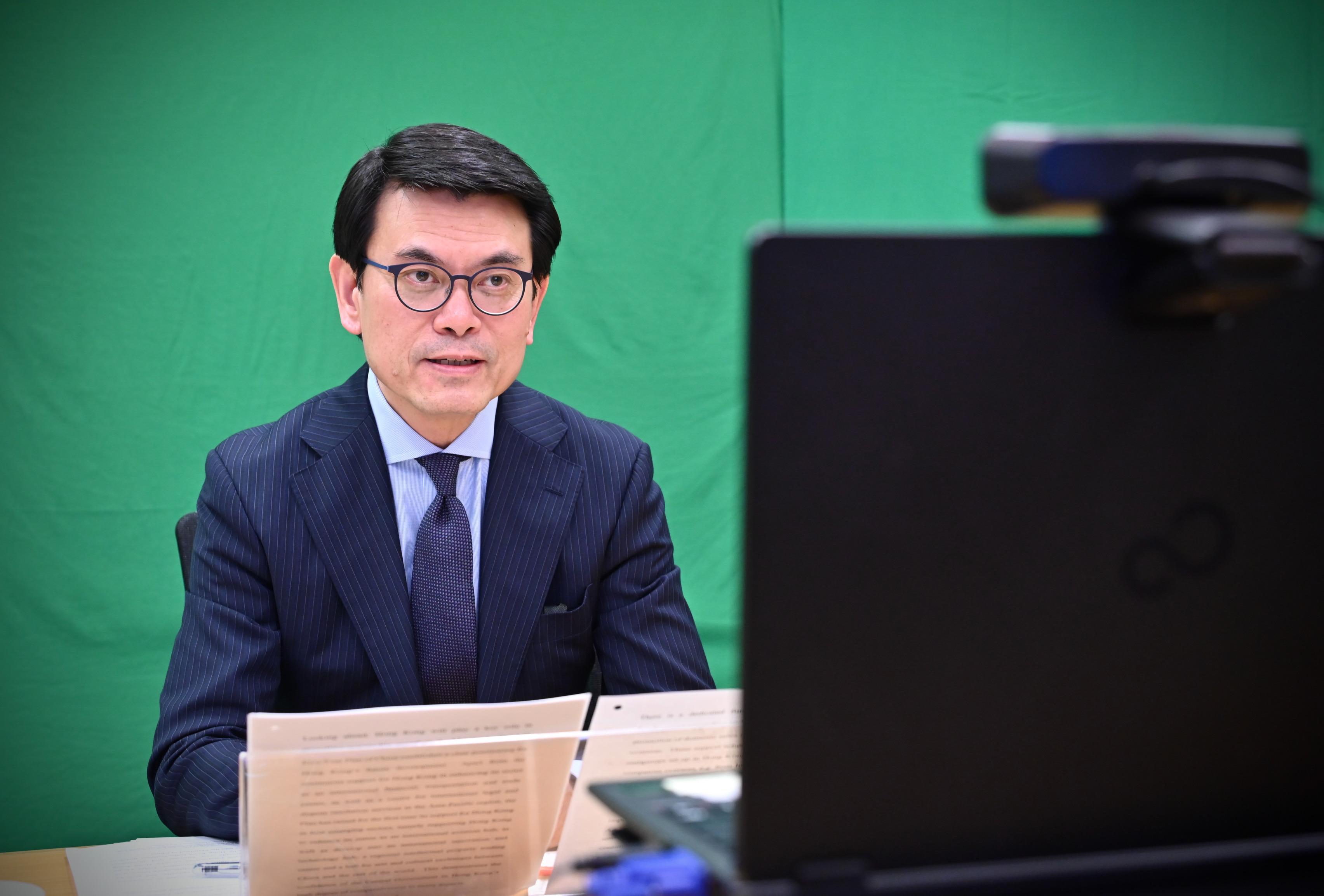商經局局長邱騰華今日(26日)出席「探索香港與中國內地的營商和投資機會」網上研討會,向超過100名來自印度商界的領袖及高級行政人員介紹香港各項制度優勢和政策,以及作為亞太地區營運基地及通向中國內地的主要門戶城市,為印度企業帶來無限商機和投資機會。他指出香港和印度一直有緊密往來,在2021年,香港是印度的第四大貿易夥伴,而印度是香港的第八大貿易夥伴。
