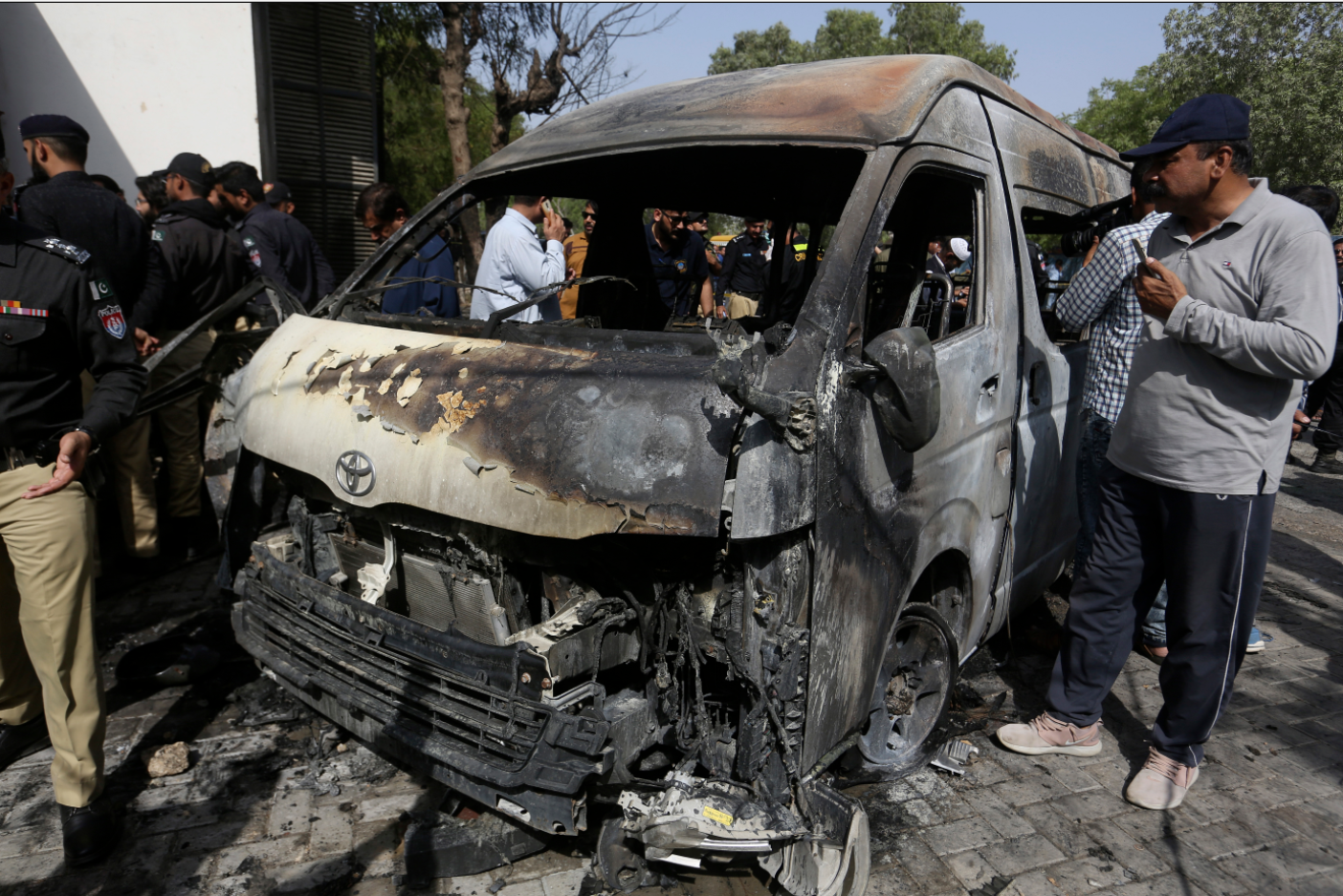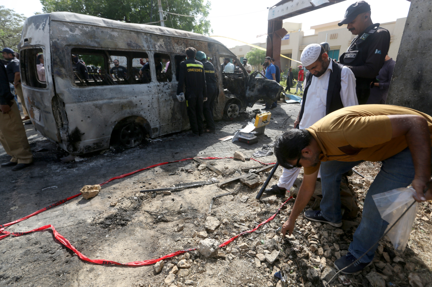 巴基斯坦總理夏巴茲‧謝里夫在當日晚間到中國駐巴基斯坦大使館悼念,並會見中國駐巴基斯坦臨時代辦龐春雪。夏巴茲‧謝里夫發表措辭強烈的譴責聲明,斥這次恐襲令人髮指,是懦弱的襲擊,他並向遇難者家屬以及中國政府和人民致以最深切的哀悼,又稱會向傷者提供一切可能的援助,亦已指示徹查事件,將肇事者繩之以法。