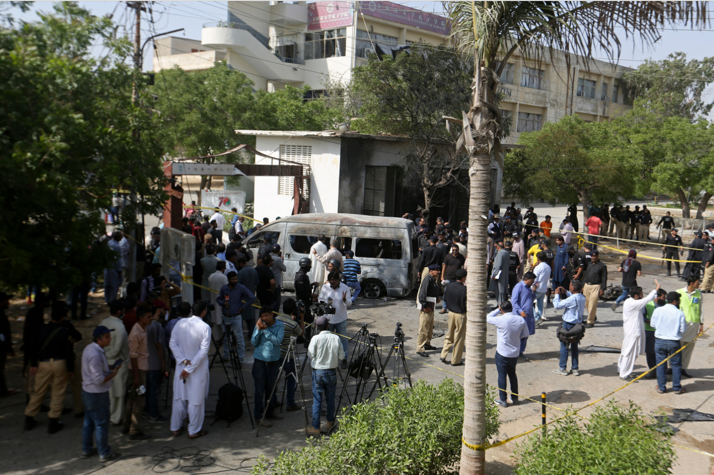 巴基斯坦卡拉奇大學孔子學院班車在校內遭遇恐怖襲擊,造成3名中國教師遇難,1名中國教師受傷。中國駐巴使領館強烈譴責這一恐怖主義行徑,對中巴兩國的遇難者表示深切哀悼,對傷者和親屬致以誠摯慰問,將會同巴方全力做好事件善後處置工作。(圖片來源:美聯社、法新社、路透社)