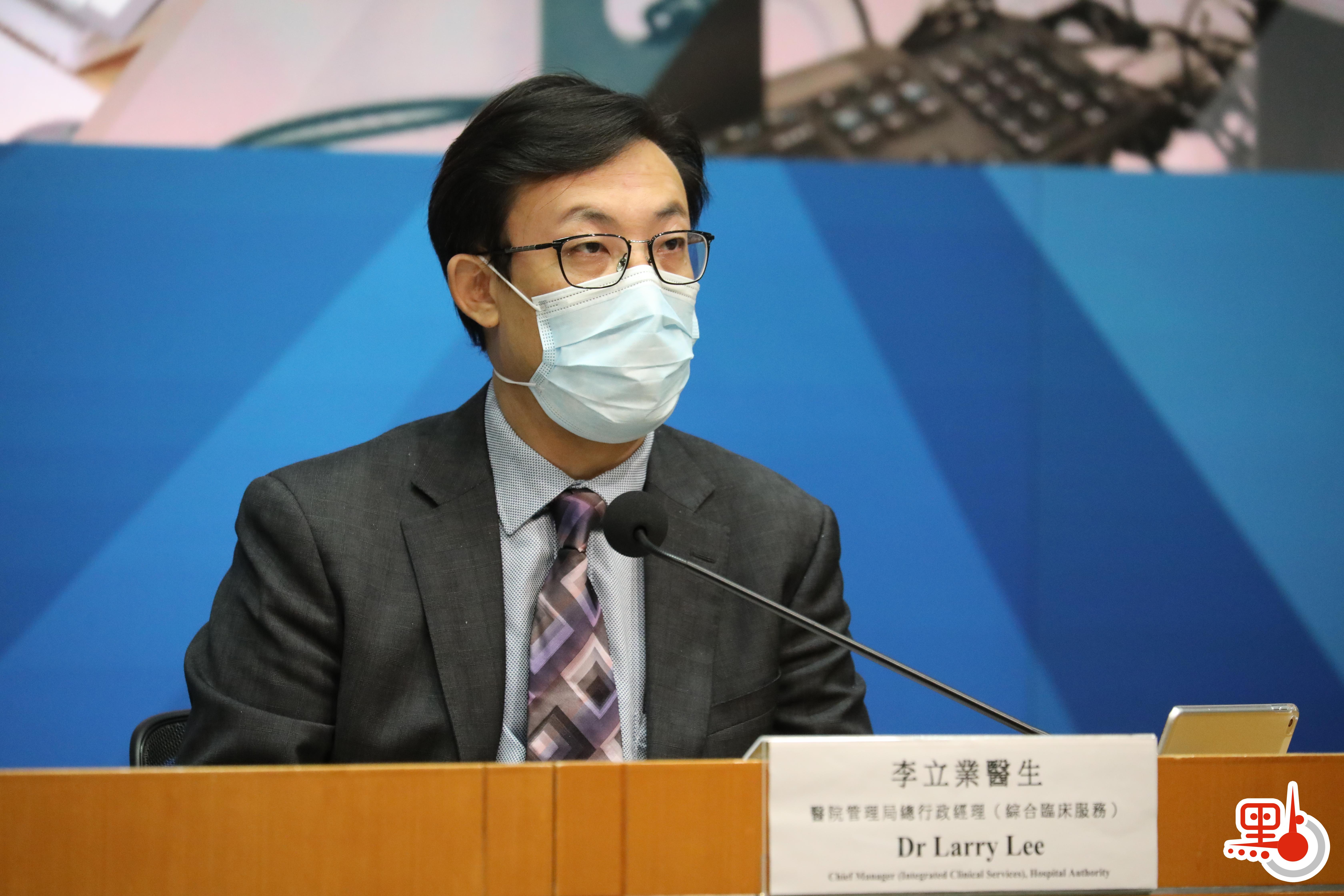 醫院管理局總行政經理(綜合臨床服務)李立業公布,截至今日零時,過去24小時醫管局有2名檢測呈陽性的病人離世,包括1男1女,年齡為85及90歲,其中1人無接種疫苗,1人打過一針疫苗。另外因為數據滯後,今日再呈報1宗5月1日離世個案,為59歲男病人,他是長期病患,患有高血壓及心臟衰竭等問題。