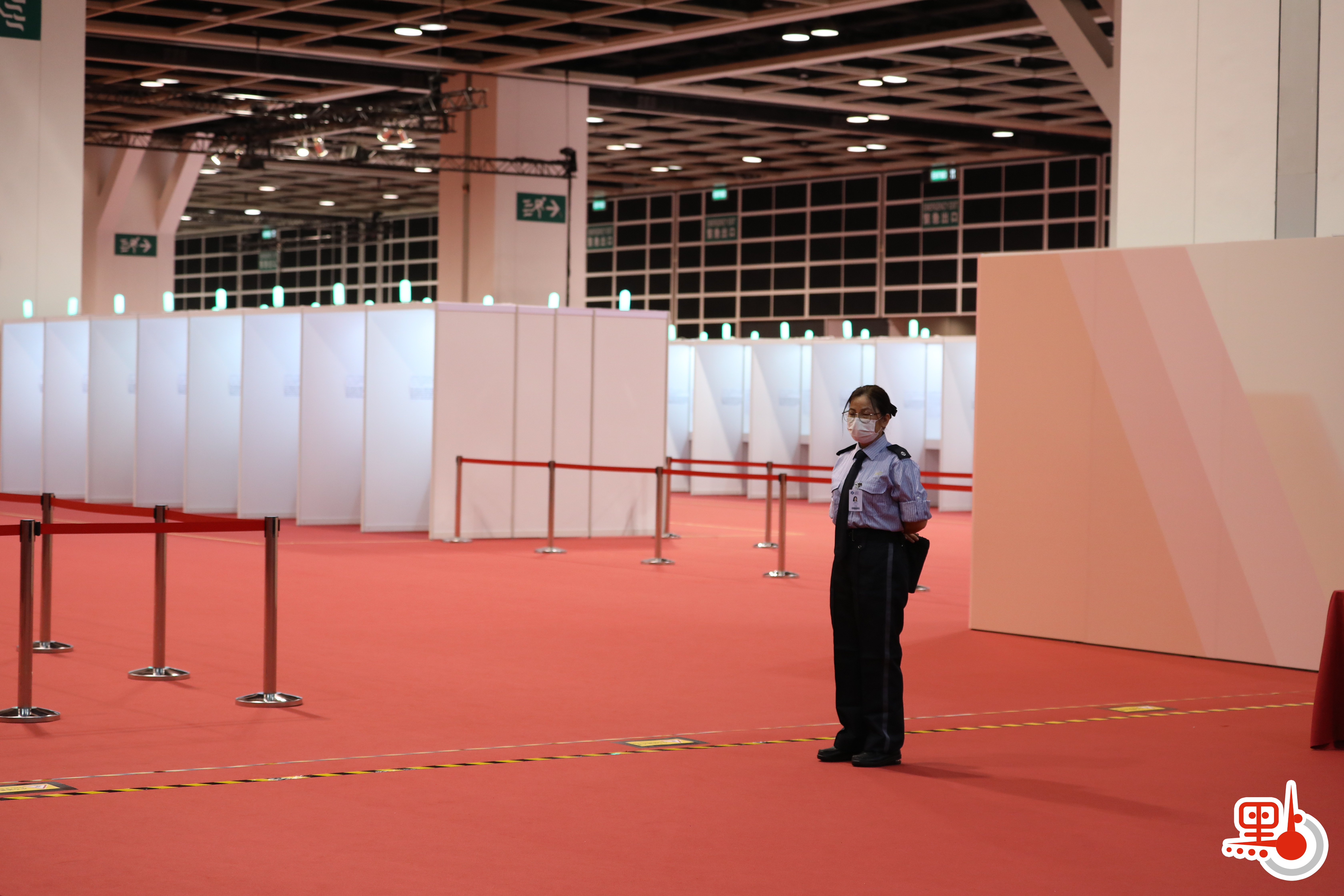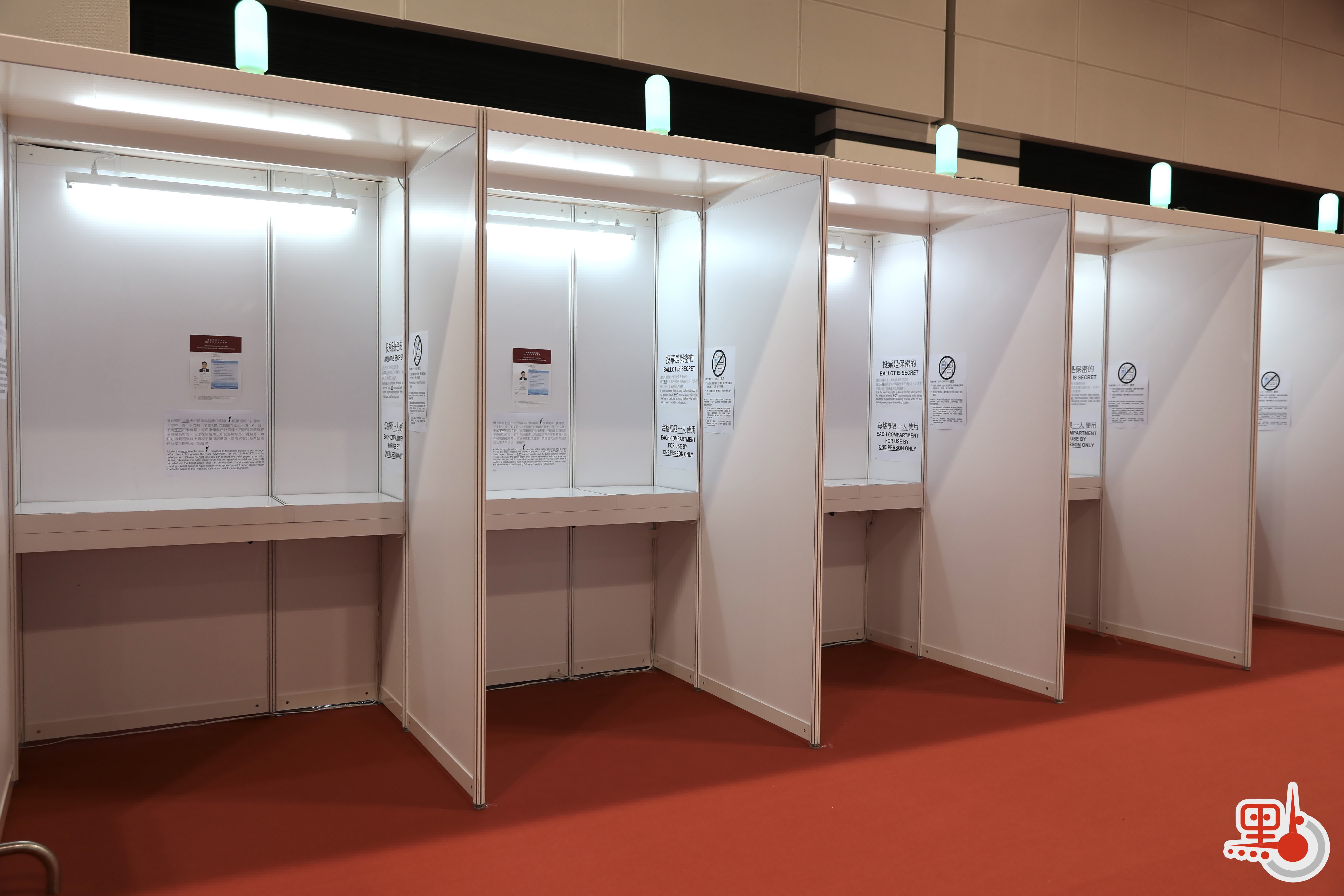 點新聞記者今日於灣仔會展投票中心發現,現場布置已經大致完成,而工作人員亦正在為明日的選舉作最後準備。