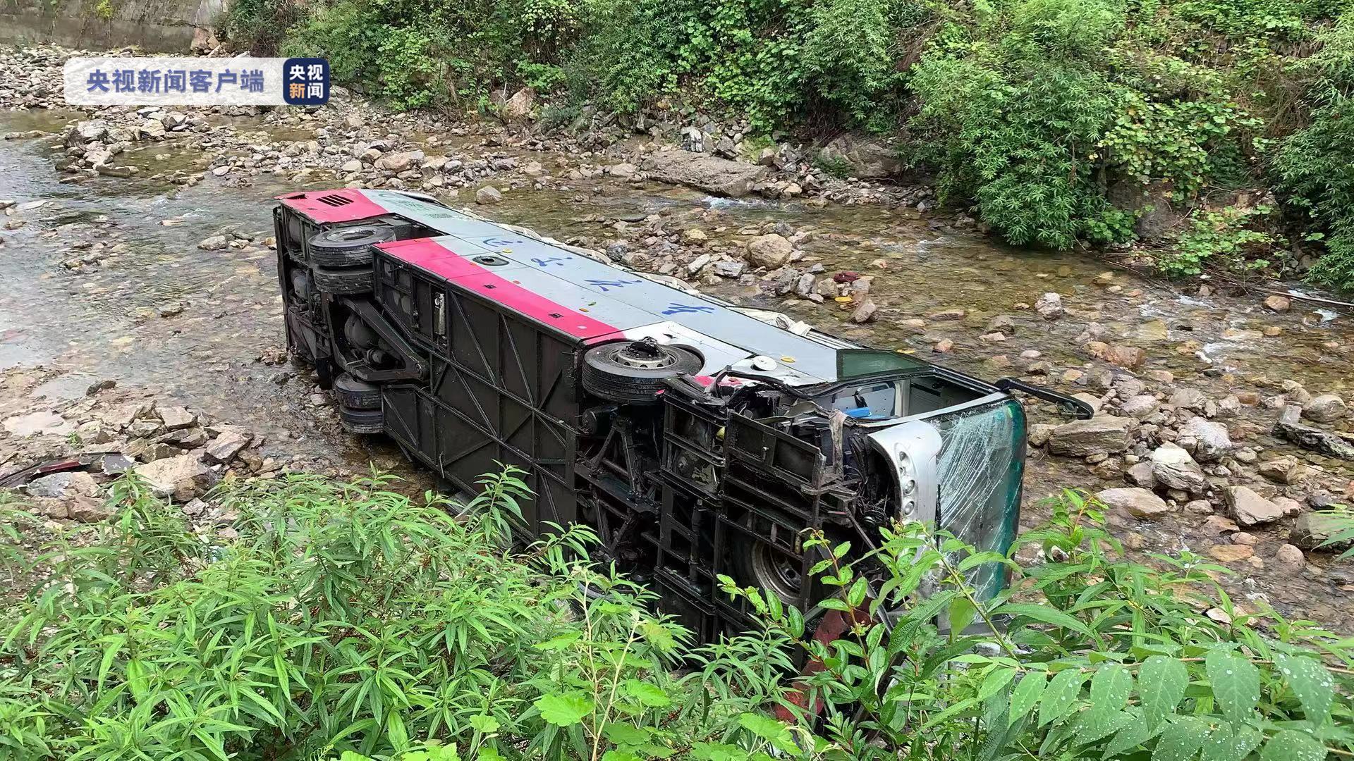 重慶城口縣一輛巴士墜入河溝。(央視新聞圖片)