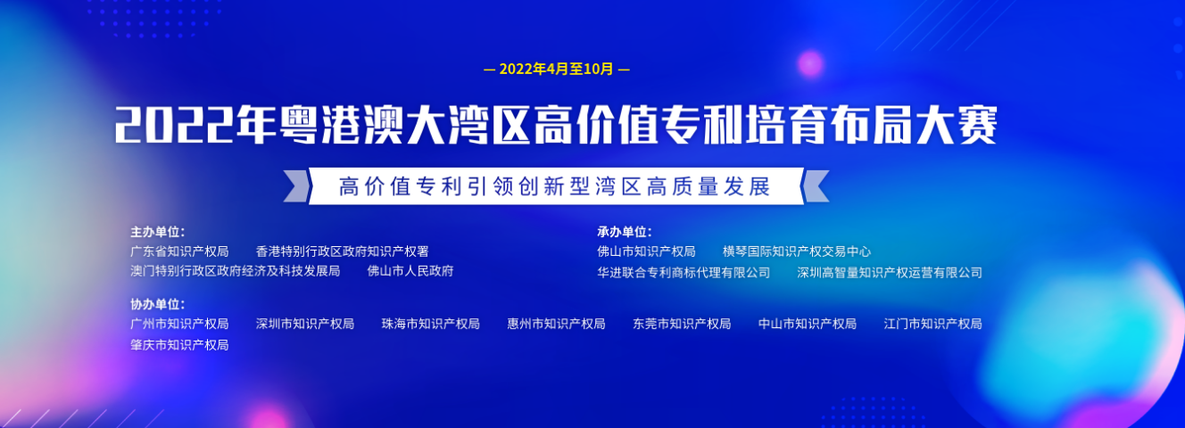 由廣東省市場監督管理局(知識產權局)、香港特區政府知識產權署、澳門特區政府經濟及科技發展局、佛山市人民政府聯合舉辦的「粵港澳大灣區高價值專利培育布局大賽」正接受報名。
