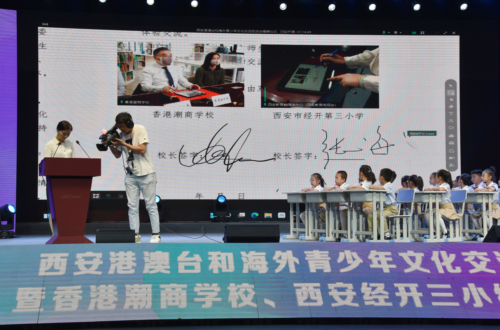在這堂精彩的兩地語文公開課之前,西安港澳台和海外青少年文化交流促進會舉行了授牌儀式,這也標誌着這個一直致力於促進西安和香港、澳門、台灣及海外青少年通過文化交流活動互相了解、共同成長的公益組織,進入了新的發展階段。與此同時,香港潮商學校與西安經開三小,通過「雲簽約」締結姊妹校。