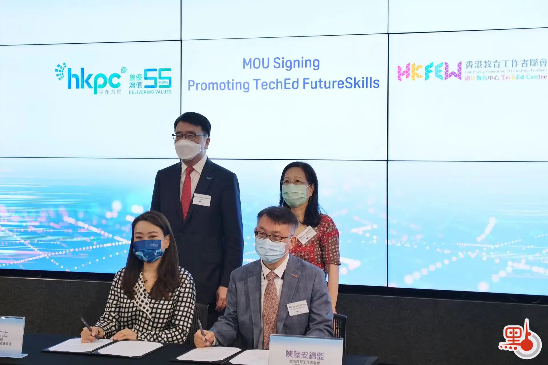 生產力局今日(7日)分別與香港教聯會創科教育中心及香港理工大學專業及持續教育學院(PolyU CPCE)簽署合作備忘錄,承諾共同推進本地創科教育(TechEd),培育未來創科人才。