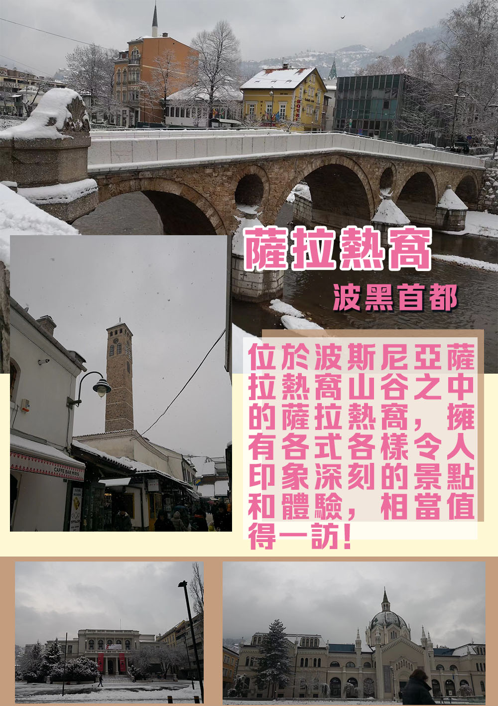 疫情逐漸好轉,大家想出遊的心蠢蠢欲動!旅遊勝地功課做起來!今次要介紹的就是位於波斯尼亞薩拉熱窩山谷之中的城市薩拉熱窩,它不僅是波黑的社會及文化中心,還是波黑主要的經濟中心。