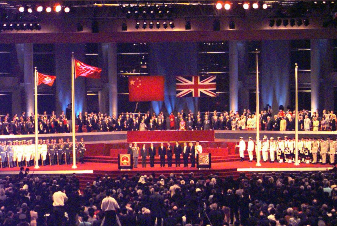 伴隨着雄壯的《義勇軍進行曲》,中華人民共和國國旗和香港特別行政區區旗在香港會展中心新翼冉冉升起、高高飄揚,中國政府恢復對香港行使主權,香港重新納入國家治理體系,「一國兩制」由構想變為現實。