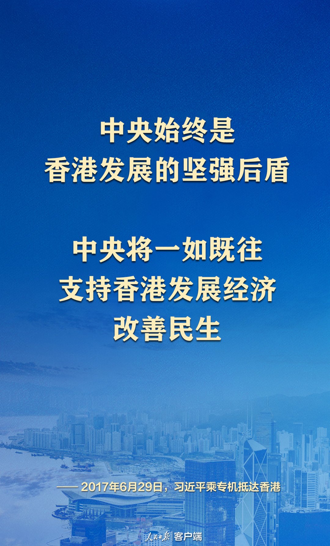 「中央始終是香港發展的堅強後盾。中央將一如既往支持香港發展經濟、改善民生」。2017年6月,習近平主席時隔9年再度踏上香港。同年,黨的十九大報告提出要支持香港「融入國家發展大局」。