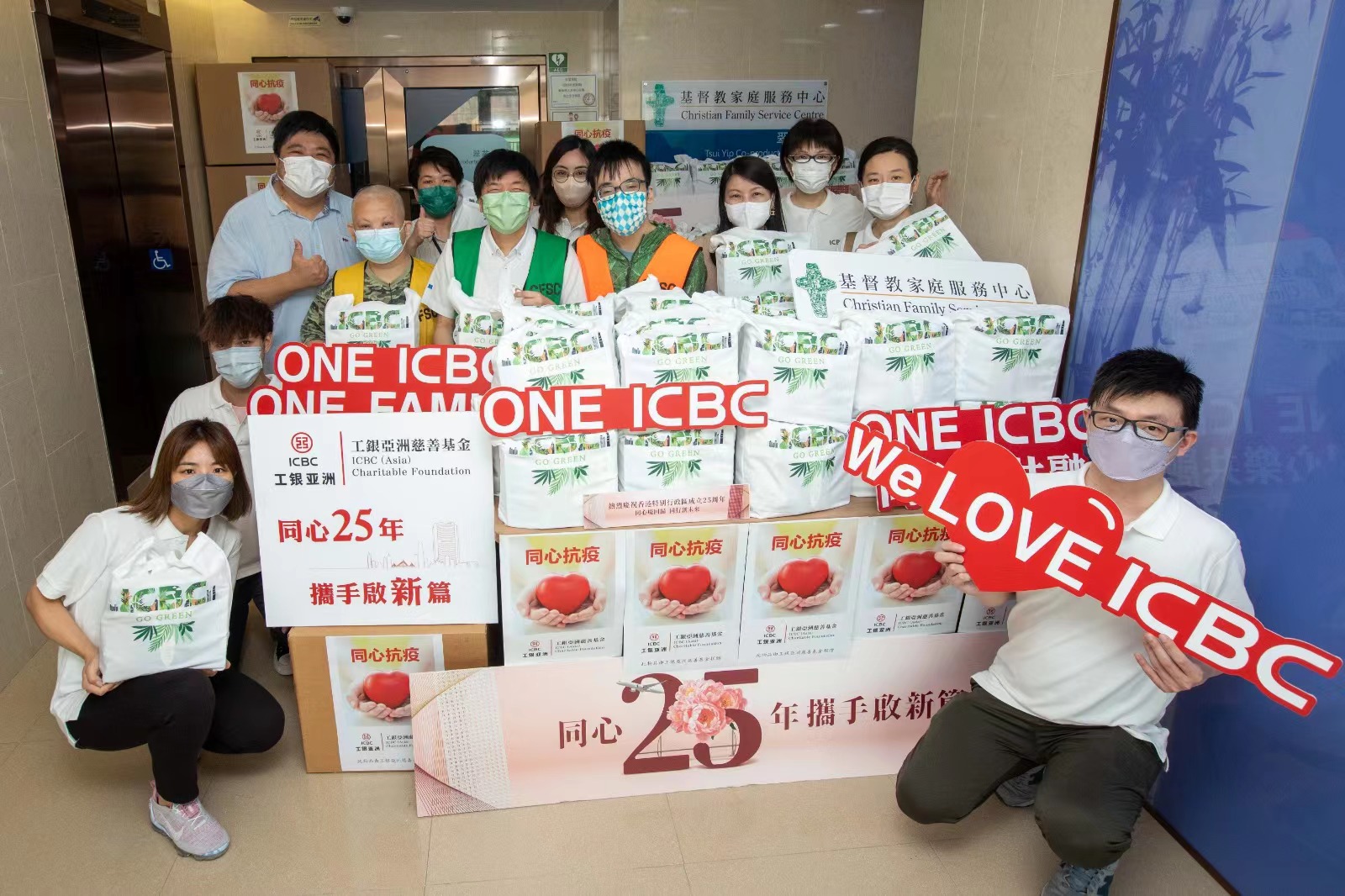 今年是香港回歸祖國25周年,中國工商銀行駐港機構今日(27日)啟動「ONE ICBC同心樂共融」系列關愛活動,赴近日再度受疫情持續反覆影響的基督教家庭服務中心探訪,捐贈愛心抗疫福袋,竭力為社福機構及院舍提供適切支援,表達回歸25年來對社會的持續責任擔當,與各界「同心25年、攜手啟新篇」。