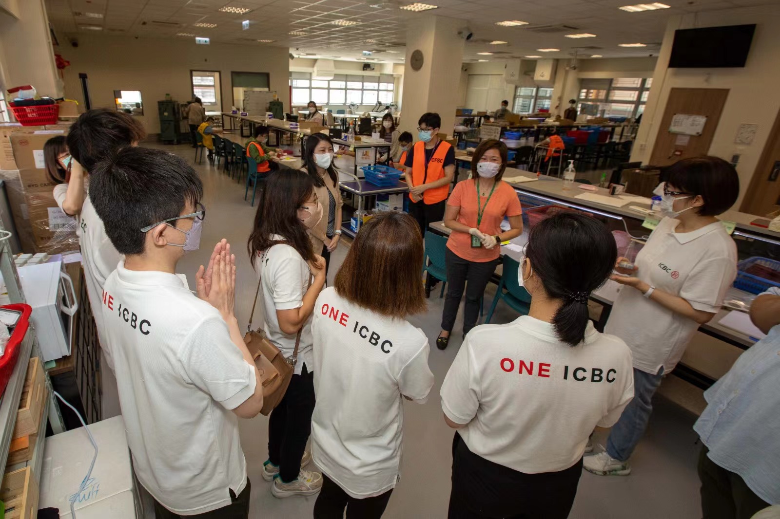 工行駐港機構代表向尚待及正在入住社區隔離設施的中心學員、其家人以及員工送上愛心抗疫福袋,內含防疫物品、食物及日用品等。期間,工行駐港機構代表亦參觀了中心內庇護工場等設施,了解學員及員工在疫情下始終堅守工作崗位的日常生活和敬業精神。