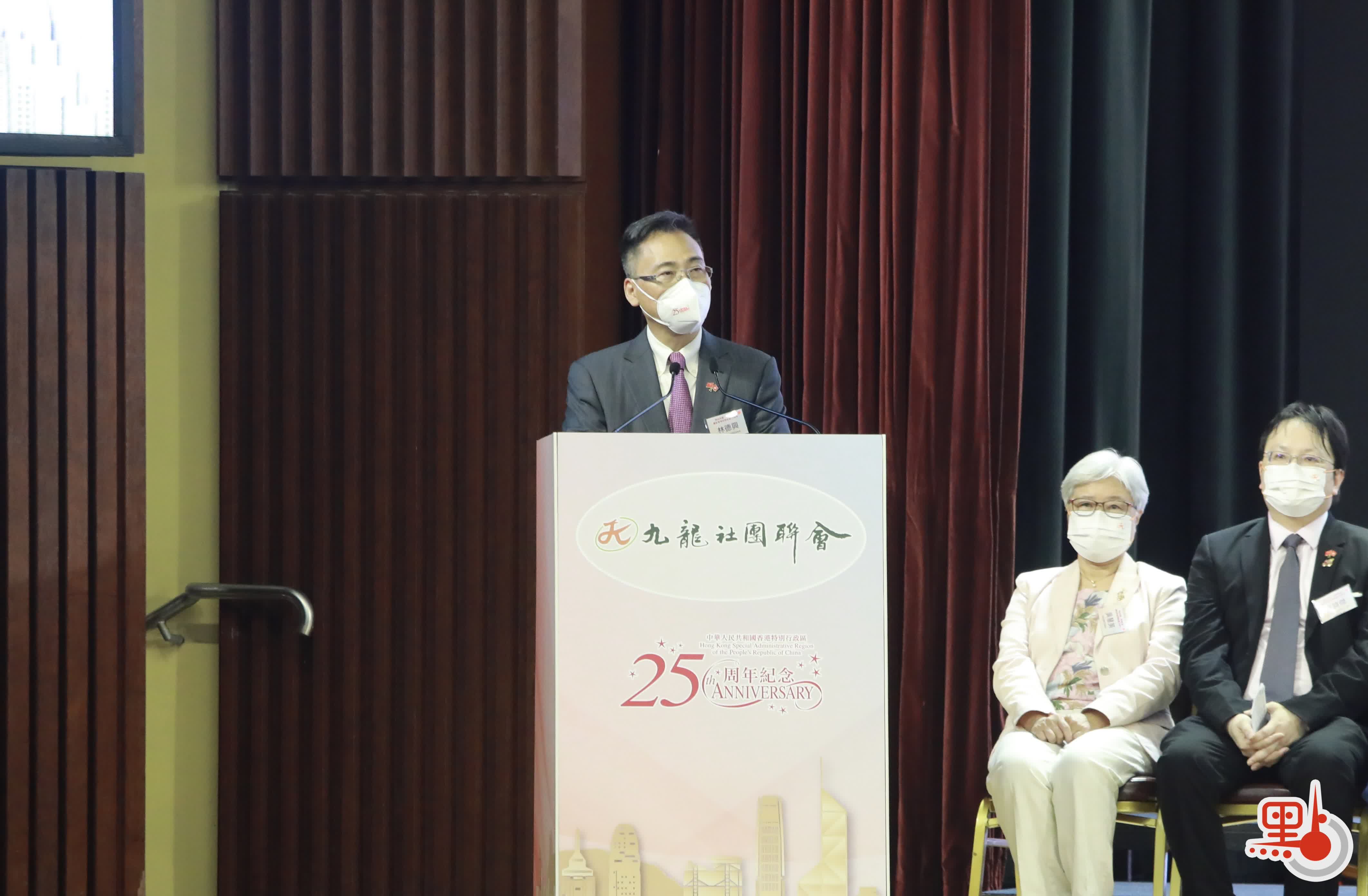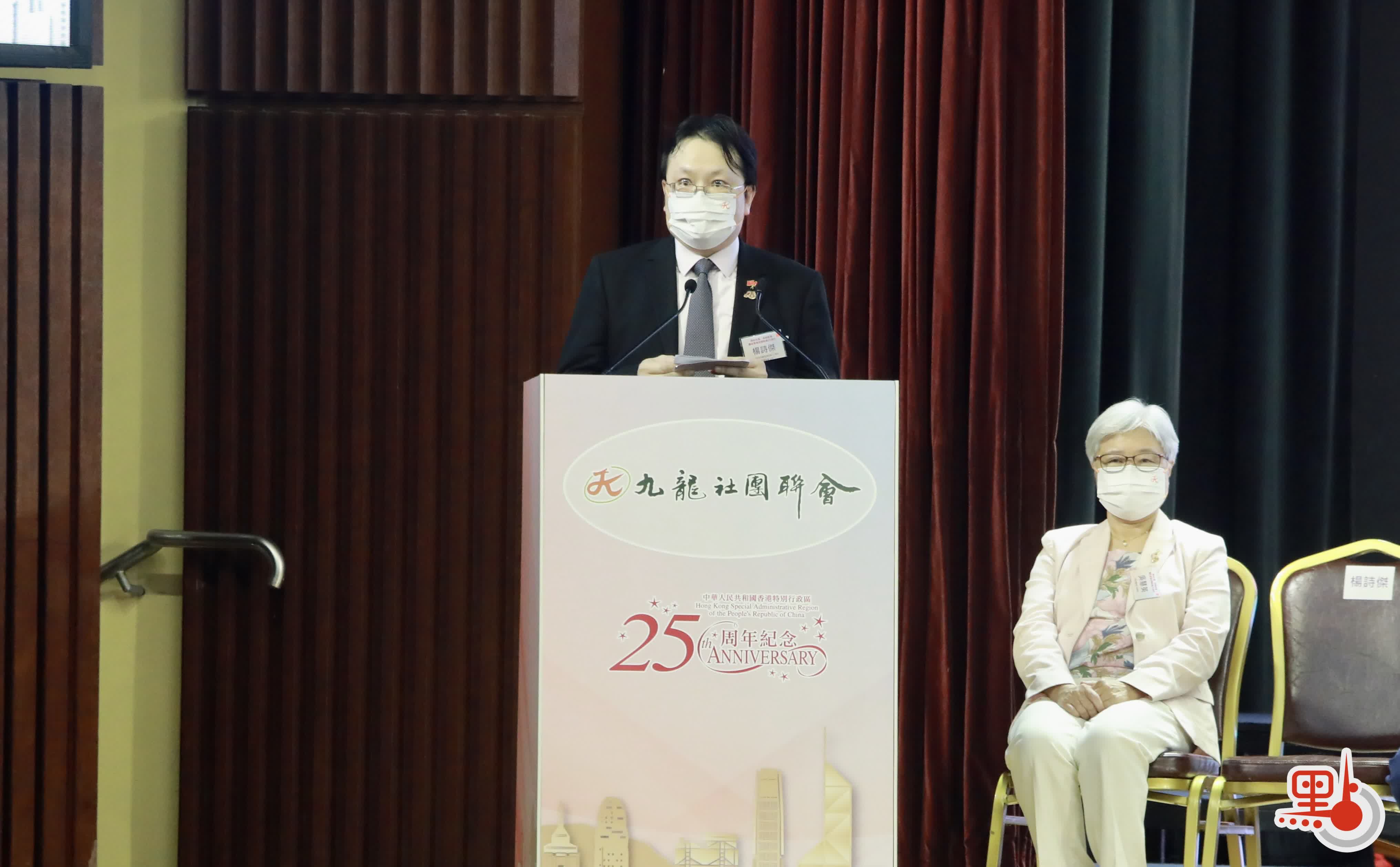 為慶祝香港特別行政區回歸祖國25周年,由九龍各界慶典委員會、九龍社團聯會主辦,九龍社團聯會油尖旺地區委員會、油尖旺地區事務聯會協辦,油尖旺各區領袖聯席全力支持的「同心共融·再開新篇 慶祝香港回歸祖國25周年」慶祝活動,今日(7月1日)下午於尖沙咀街坊福利會會堂舉辦。