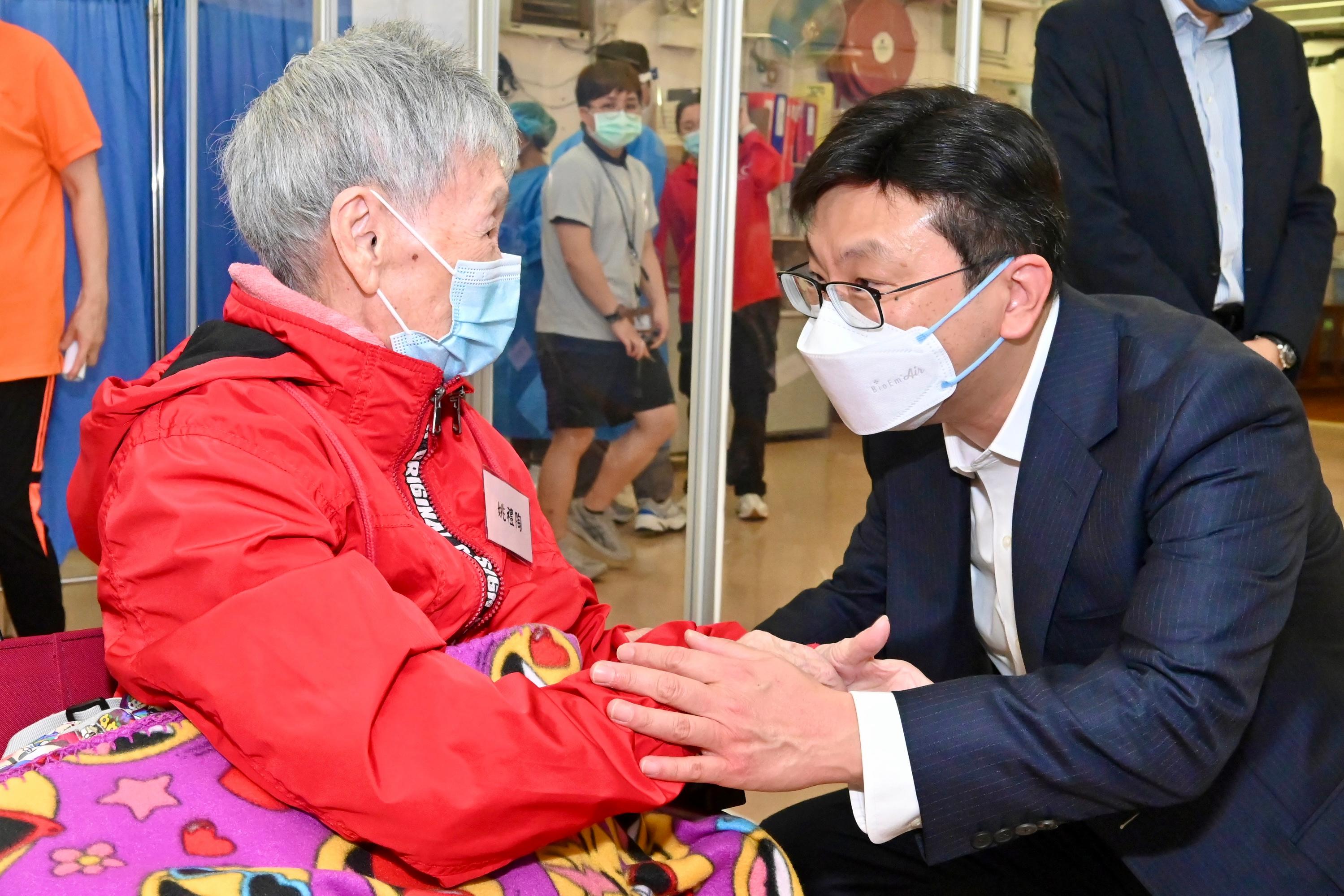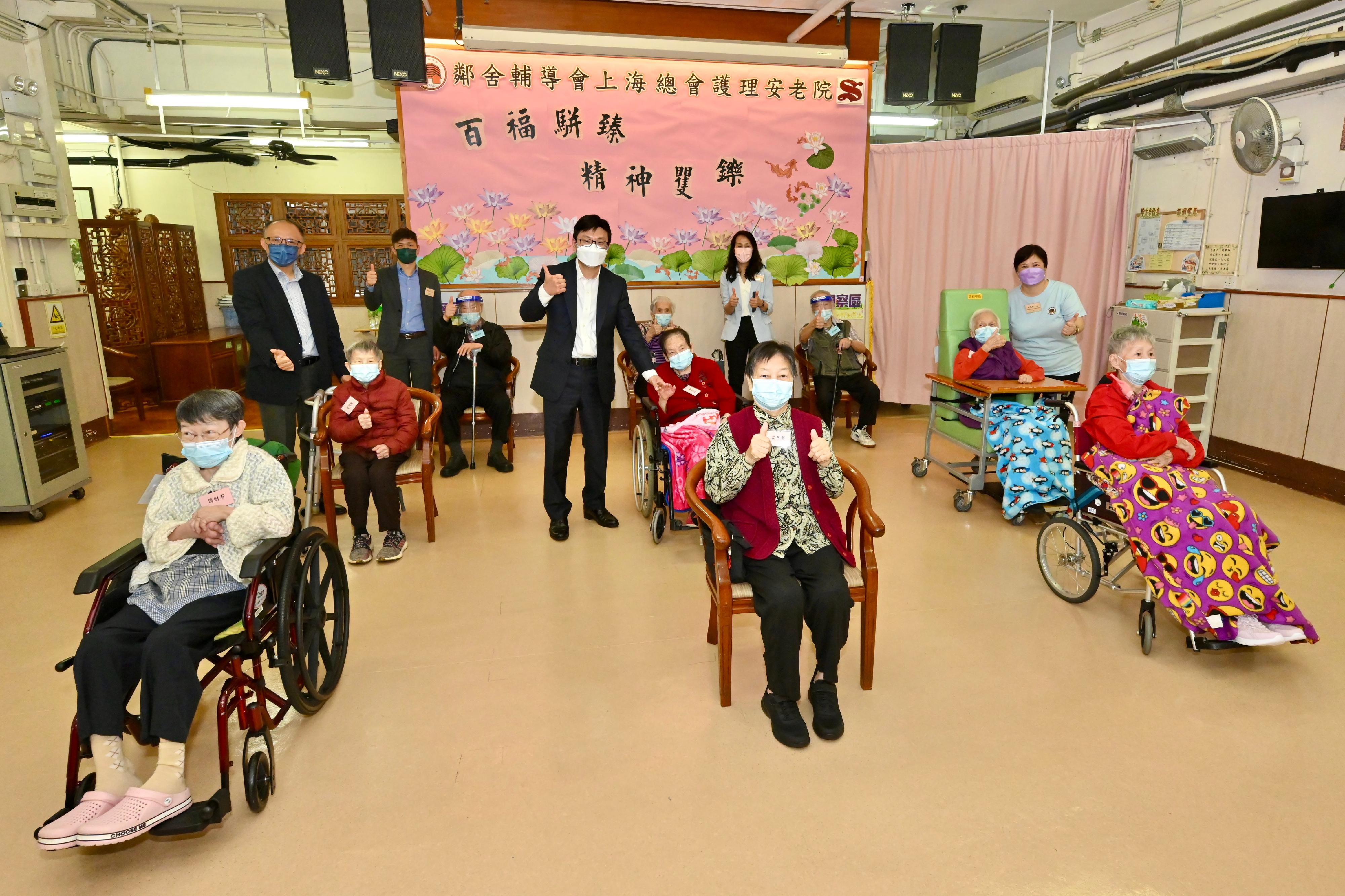 勞工及福利局局長孫玉菡今日(5日)到何文田一間安老院,視察長者接種新冠疫苗情況。