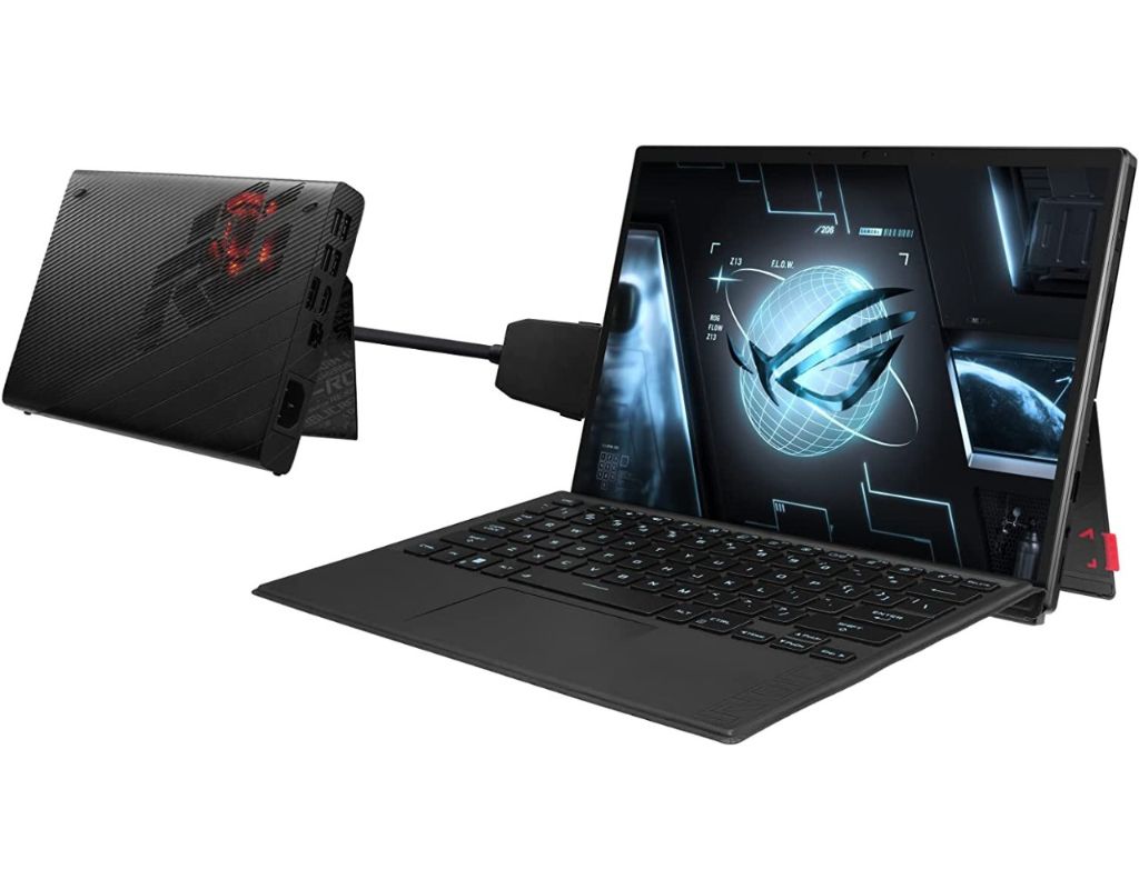 ROG Flow Z13 可搭配Nvidia GeForce RTX 3080 超小型XG Mobile 外接顯示卡盒一起使用,帶來媲美桌上型電腦的繪圖效能。專為外接顯示卡盒設計的連接介面,更提供獨享的63 Gbps 傳輸頻寬,效能遠比Thunderbolt 連接的外接顯示卡盒更強大。