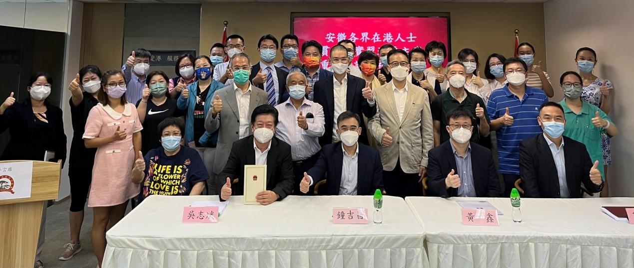 安徽各界人士代表就貫徹落實習近平主席講話精神作交流發言。總會副會長、安徽省政協委員黃傑、李民橋分別圍繞在中醫界、金融界貫徹落實習近平主席重要講話精神要求提出了具體方案辦法;總會副會長兼秘書長、安徽省駐港聯繫公司黃山公司董事總經理葛焱坤就如何發揮安徽在港中資力量,形成合力提出了具體的工作思路;八十餘歲安徽在港鄉友代表汪祖秀作為一名普通居民,見證了香港由亂到治,並走向由治及興,提出了結合疫情防控實際盡快實現兩地通關,以及加深皖港兩地在文化交流方面的建議;總會青年及義工代表耿春亞、孔顔結合自身從事的金融服務、科創行業,對未來解決青年「四業」問題提出了具體的措施。