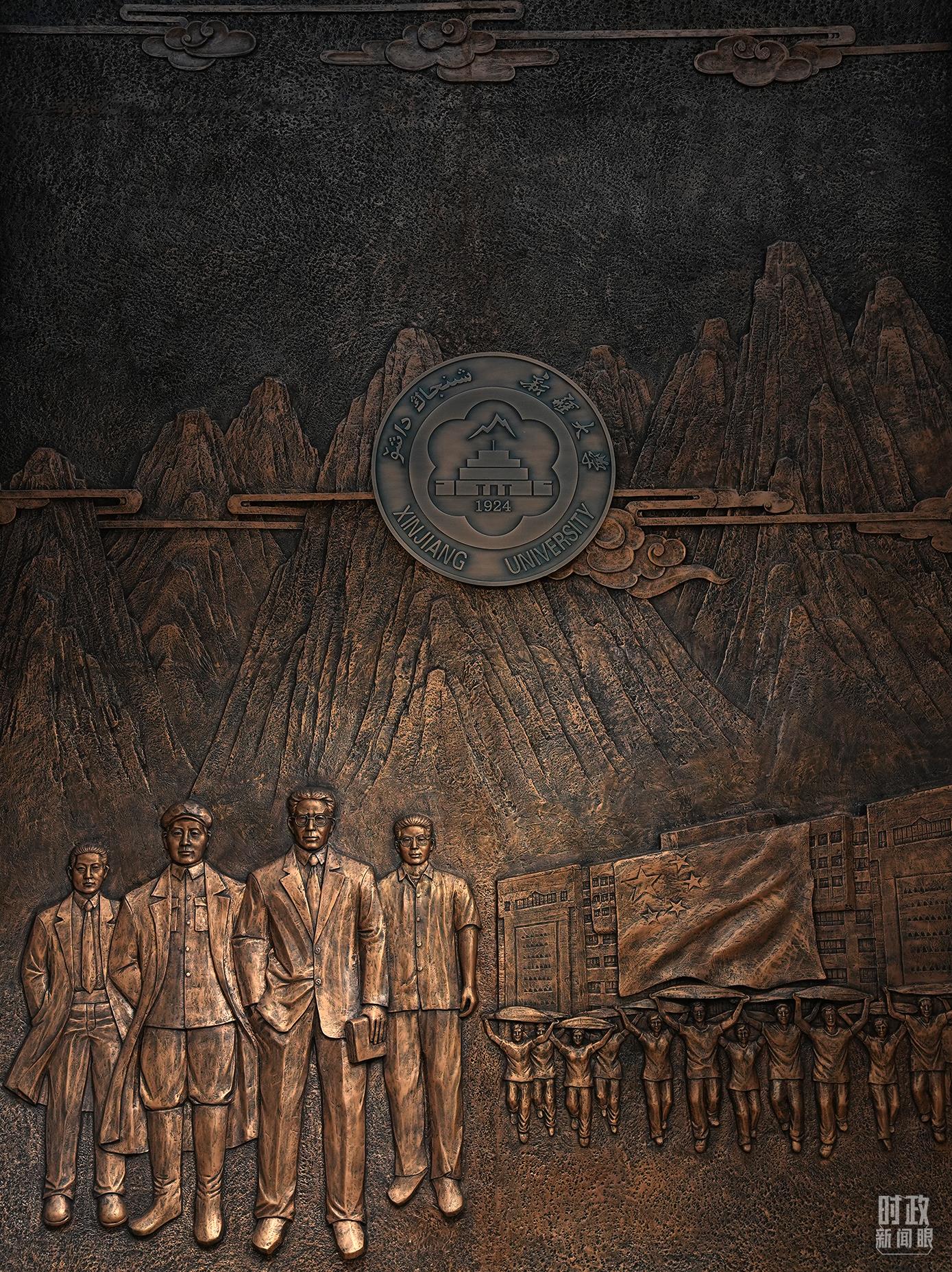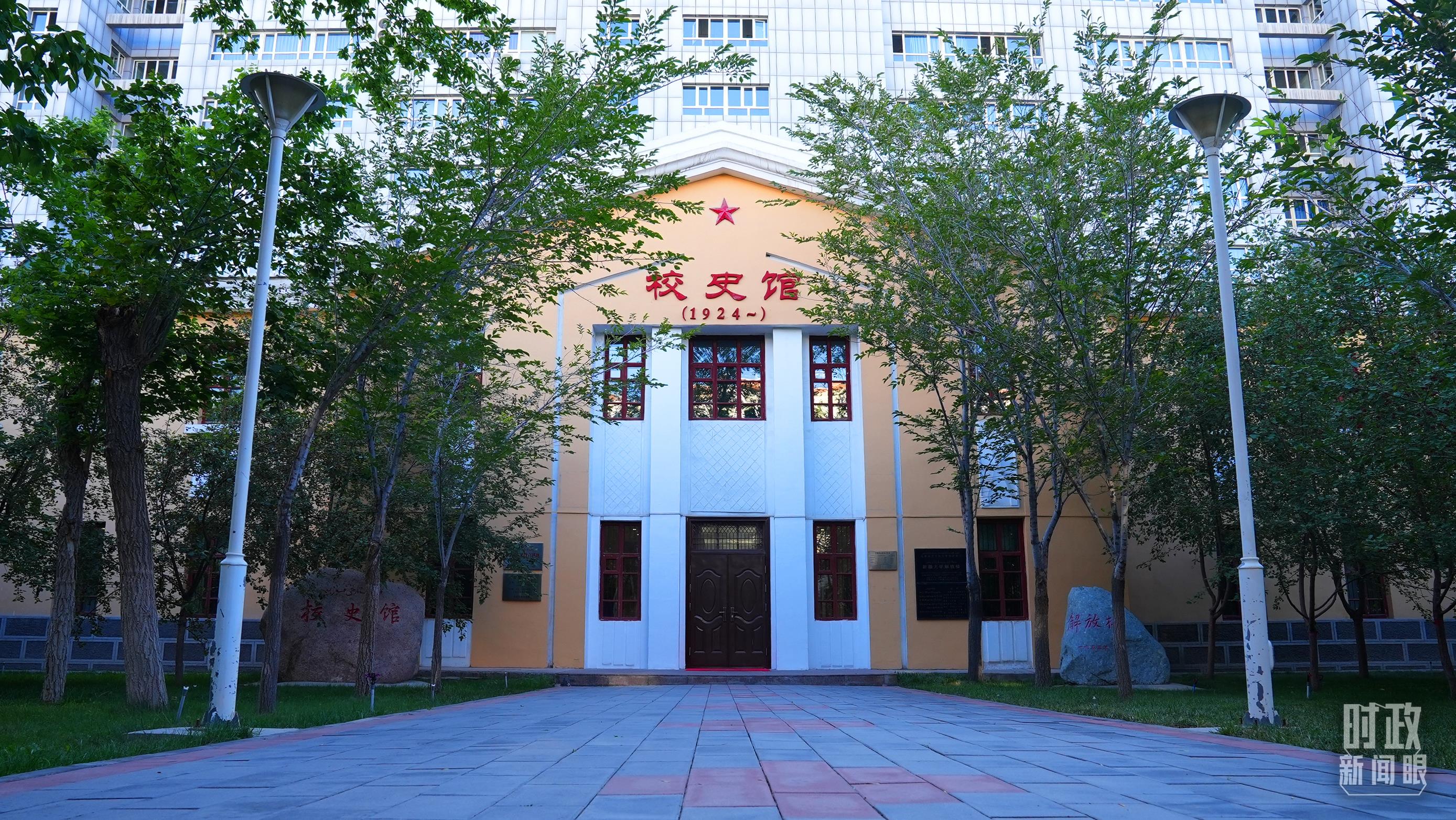 沿這條路前行,有一棟蘇式黃色二層小樓,是新疆大學校史館。校史館序廳,展示着俞秀松、林基路等共產黨人的浮雕銅像。「流金歲月」「紅色傳承」「堅守陣地」等展廳,陳列着見證新疆大學近百年奮鬥歷程的珍貴史料。