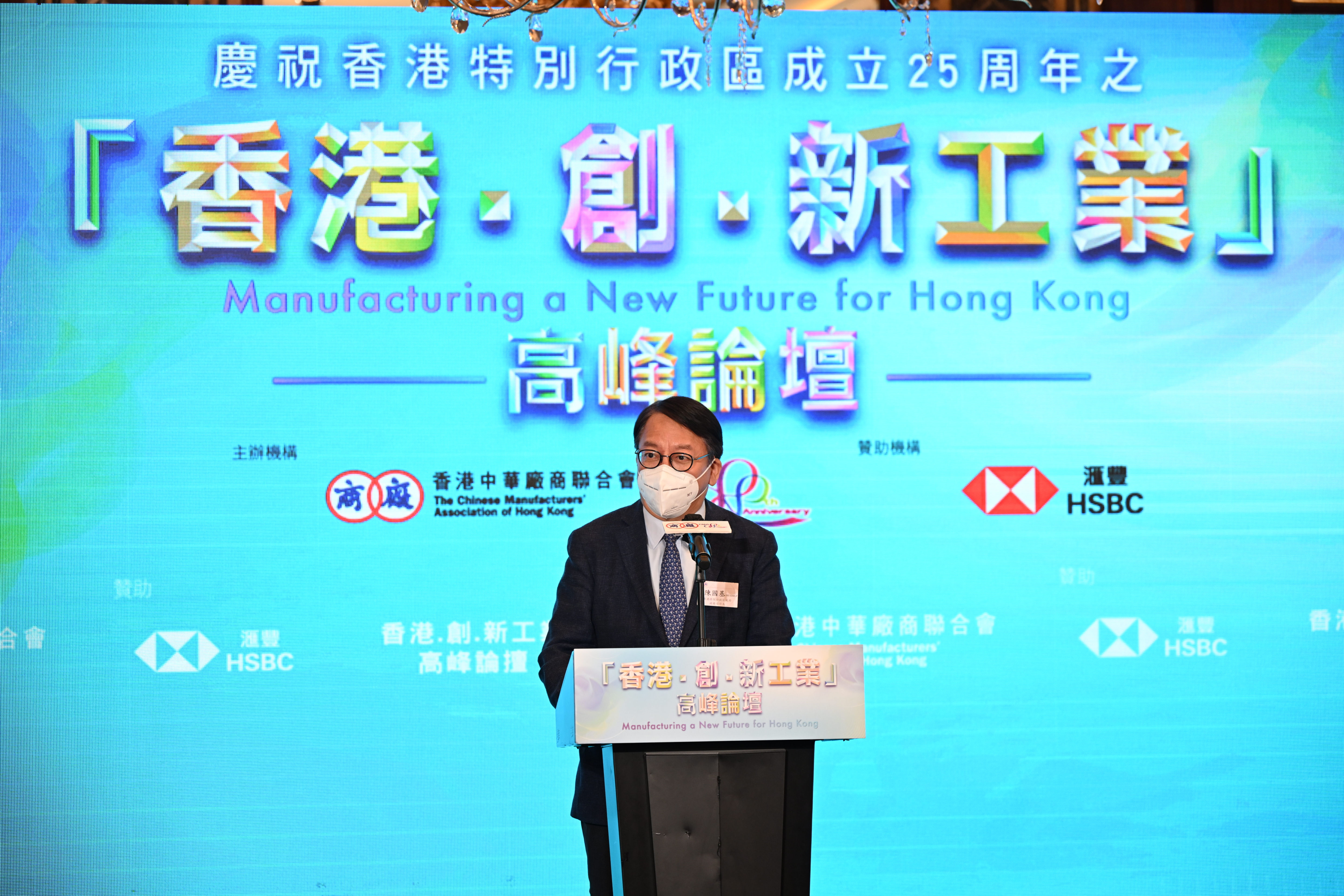 香港中華廠商聯合會今日(22日)舉辦「香港·創·新工業」高峰論壇,多位嘉賓圍繞「再工業化」推動創新科技的最新發展,實現產業多元化,探討「港研港產」的機遇和挑戰。