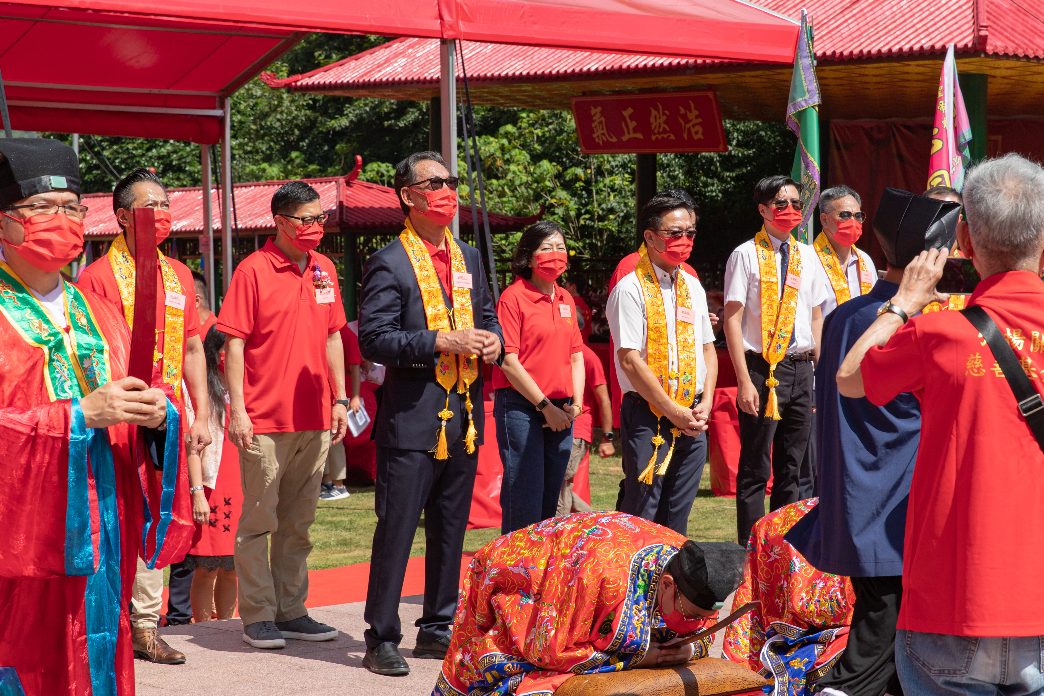 今年7月22日是關聖帝君誕辰日,「壬寅年關帝聖誕祝壽消災祈福祭祀儀式」當日在元朗大棠有機生態園舉行,400多名信眾前往關帝廣場奉清香、拜祭、念經、禱告。保安局局長鄧炳強、民政及青年事務局局長麥美娟、新界鄉議局主席劉業強等亦有出席儀式。