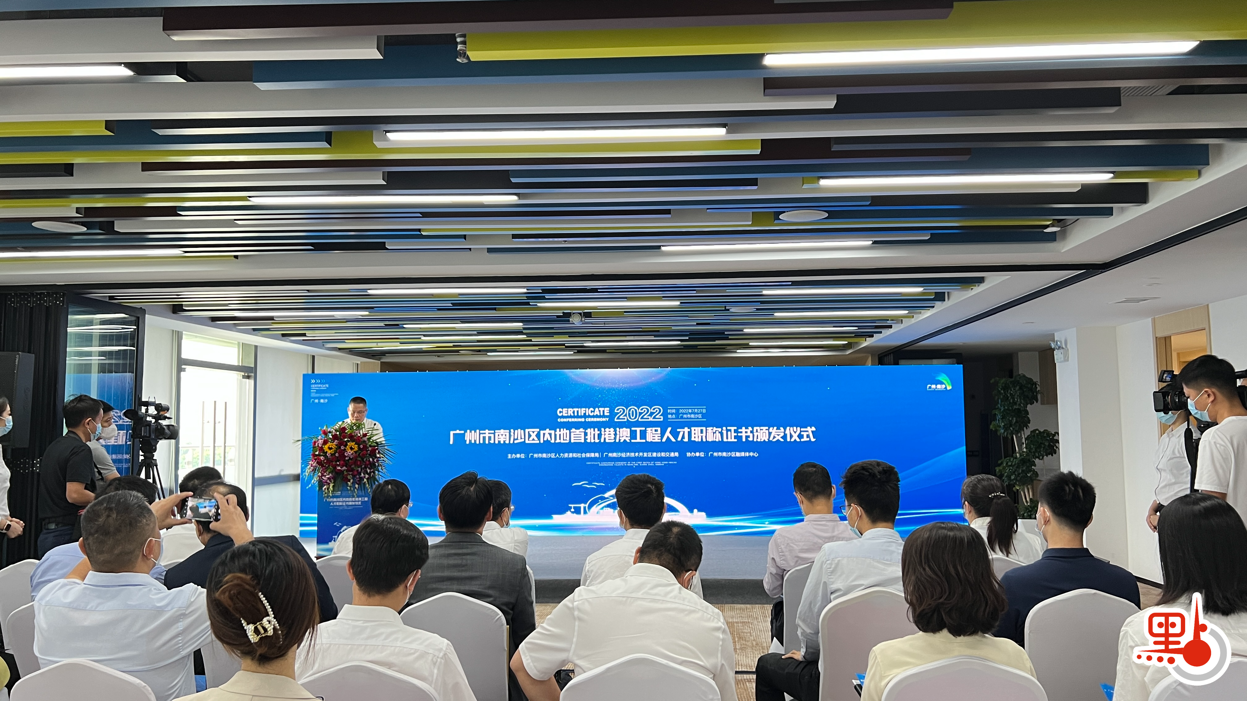 廣州市南沙區今日(27日)舉辦「廣州市南沙區內地首批港澳工程人才職稱證書頒發儀式」,為16名港澳人才頒發職稱證書。這是內地首批取得職稱的港澳工程人才,取得職稱證書後的港澳工程人才在內地承接和開展建築工程項目時,將享有與內地工程師相同的資質和待遇。