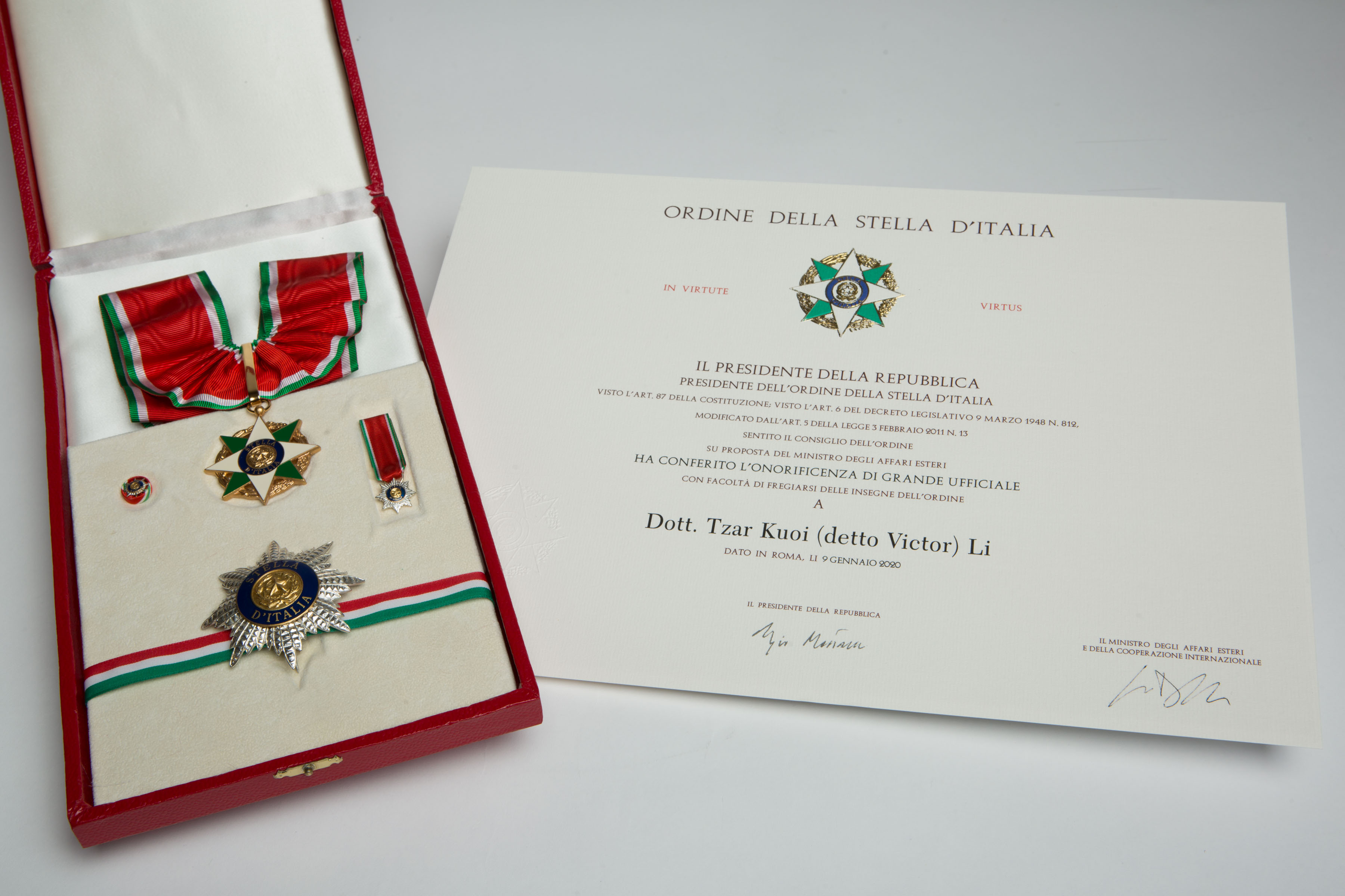 「意大利之星」乃意大利授予外國傑出人士的一項重要榮譽,以表彰他們在經濟、文化或科學領域對意大利所作的非凡貢獻。意大利是次為表揚李澤鉅對推動該國經濟及科技發展而頒授此殊榮。