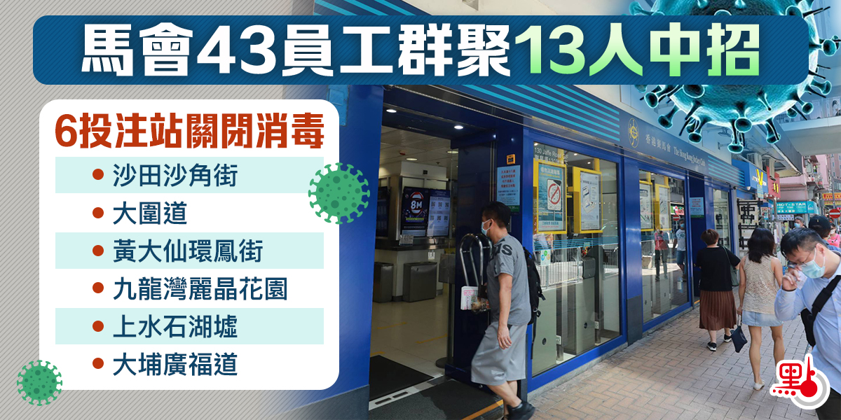 馬會43員工群聚13人中招 6投注站關閉消毒