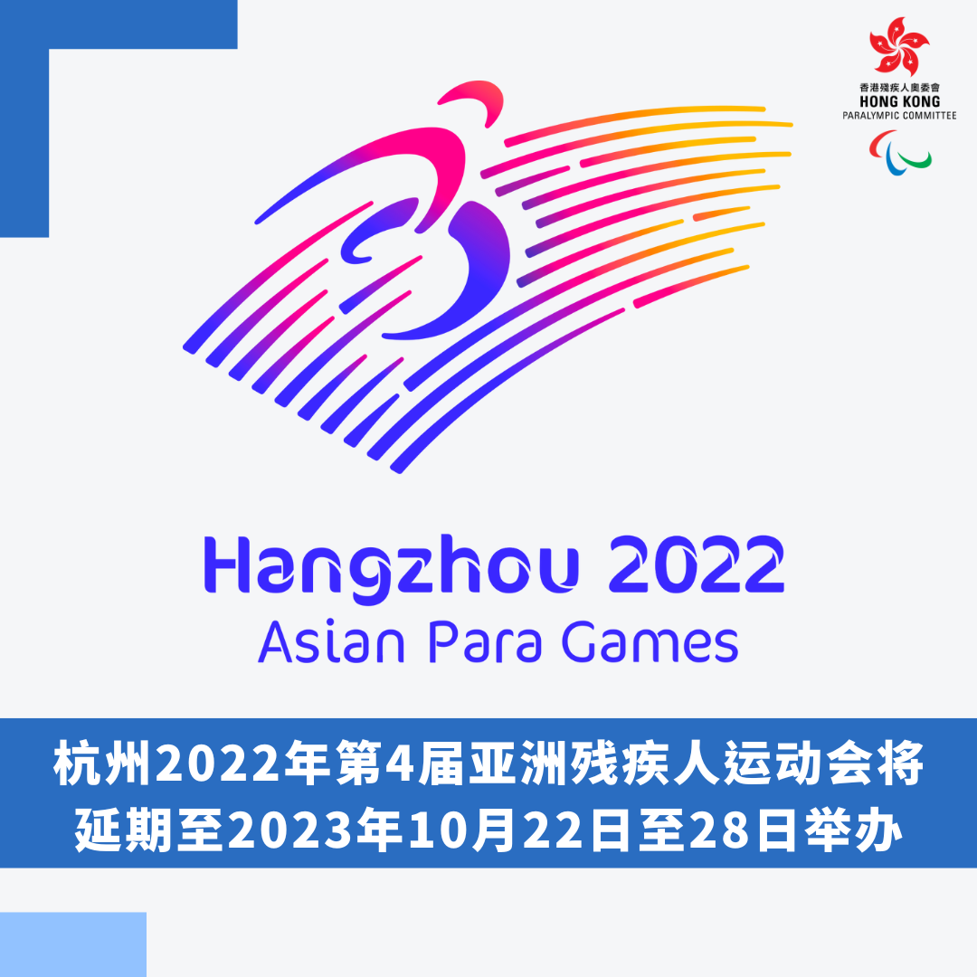 香港殘疾人奧委會今日表示,亞洲殘疾人奧林匹克委員會宣布,原定於2022年10月9日至15日舉行的杭州2022年第4屆亞洲殘疾人運動會(亞殘運會)將延期至2023年10月22日至28日舉辦。