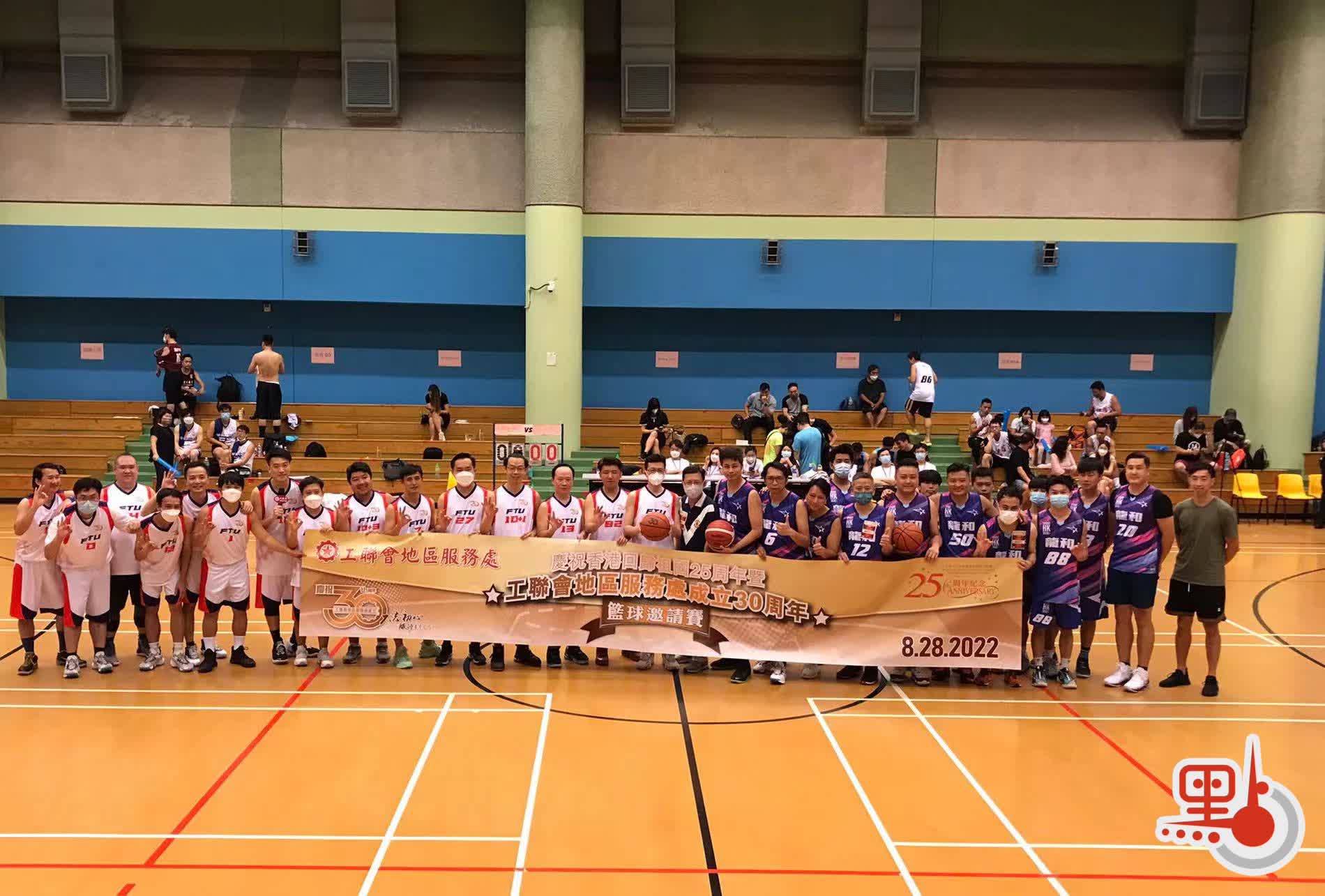 為慶祝香港回歸祖國25周年暨工聯會地區服務處成立30周年,工聯會地區服務處是日(8月28日)下午於荃灣荃景圍體育館舉辦「慶祝香港回歸祖國25周年暨工聯會地區服務處成立30周年籃球邀請賽」。是次活動邀請到工聯會吳秋北會長﹑荃灣民政事務專員區家盛先生親臨主禮並為在場健兒打氣。是次參賽隊伍陣容鼎盛,包括邀請到由多位現屆立法會議員鄭泳舜﹑何俊賢﹑郭偉强﹑陸頌雄﹑鄧家彪﹑陳學鋒﹑李世榮及姚柏良等組成的「立法會龍和隊」﹑香港菁英會常務副主席林智彬帶領的「香港菁英會隊」﹑新民黨青年委員會主席劉文杰帶領的「新民黨青年委員會隊」﹑青年民建聯主席施永泰帶領的「青年民建聯隊」﹑工聯會青年事務委員會主任林偉江帶領的「工聯青委隊」﹑「龍騰志青隊」、「東青GO隊」、「港CHING工作室隊」及「西菁隊」隊伍參與,場面熱鬧,更體現以運動比賽成為團結社會各界及增進彼此友誼的精神。