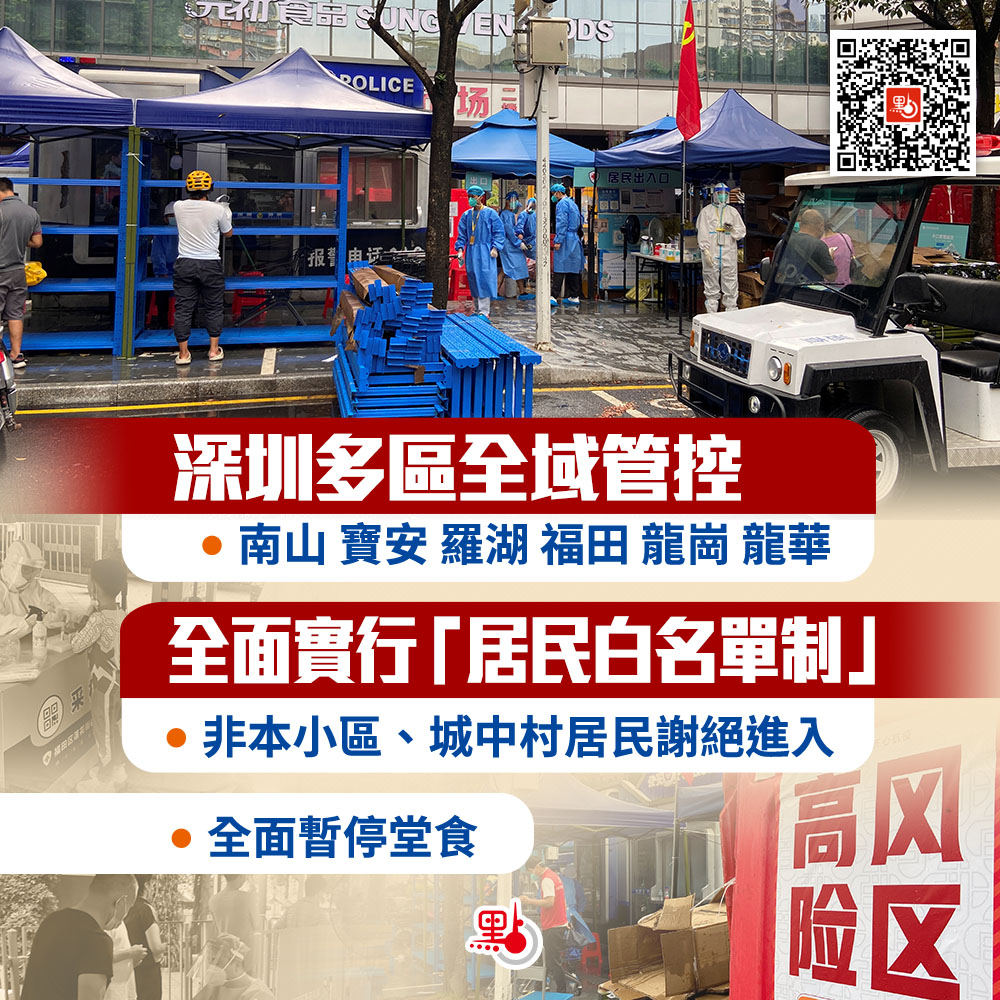 此外,羅湖區、福田區、龍崗區、龍華區此前已實行全域管控措施,目前深圳已有6個區實行全域管控措施。