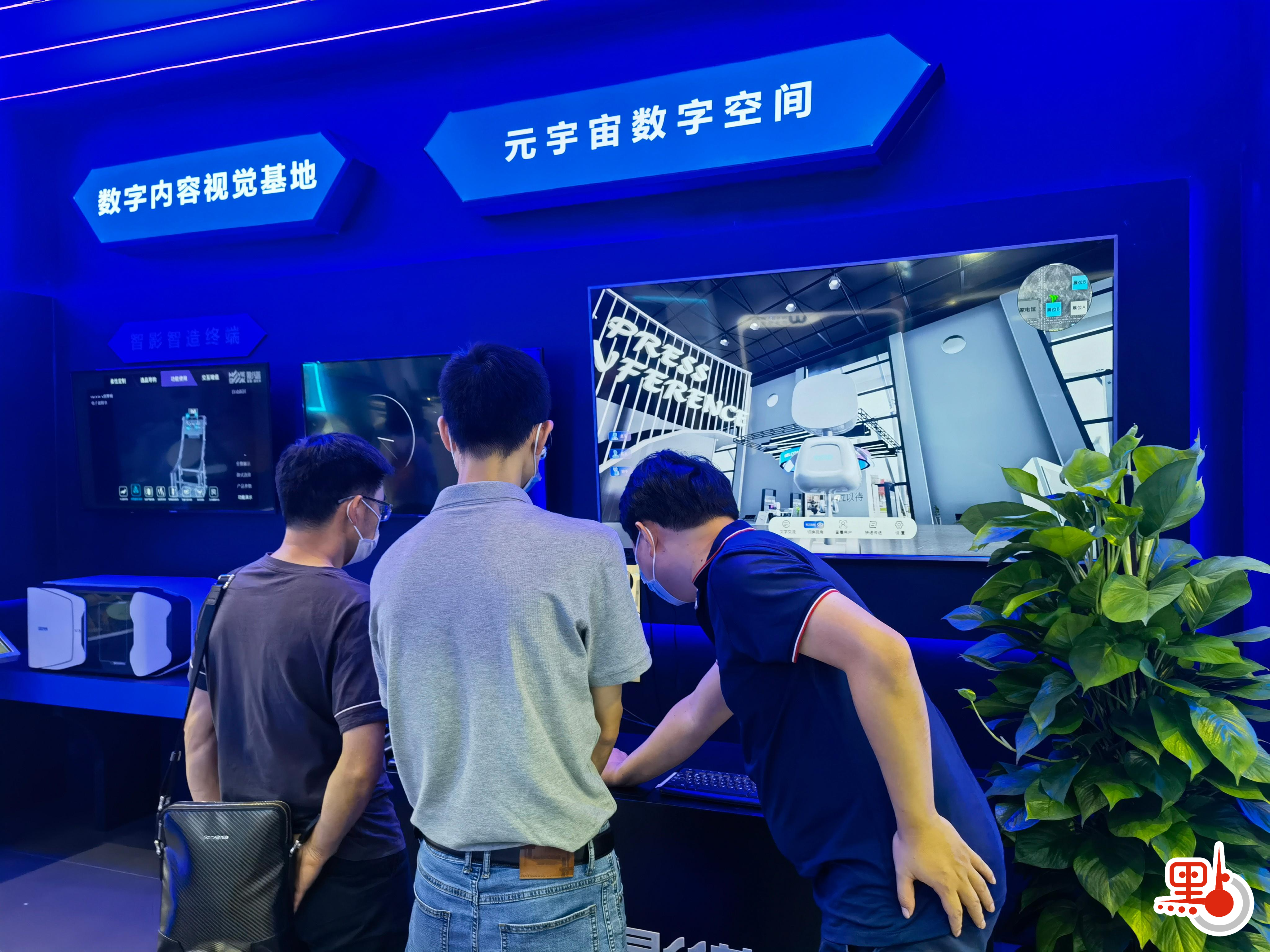 在此次展會中,眾多高科技展品亮相,其中「元宇宙」相關展示得到了眾多關注,例如影譜科技帶來了「數字空間-元宇宙展會服務」展示。記者在現場看到,展廳內設置了數字展廳交互區,用戶可通過VR眼鏡、pad、PC三端,登錄元宇宙數字空間進行交互體驗,該公司相關負責人表示:「這樣的場景其實我們已經在一些科技會展上進行了應用,相當於一個試運行,未來可以實現元宇宙參會,助力線上會展行業的發展」。