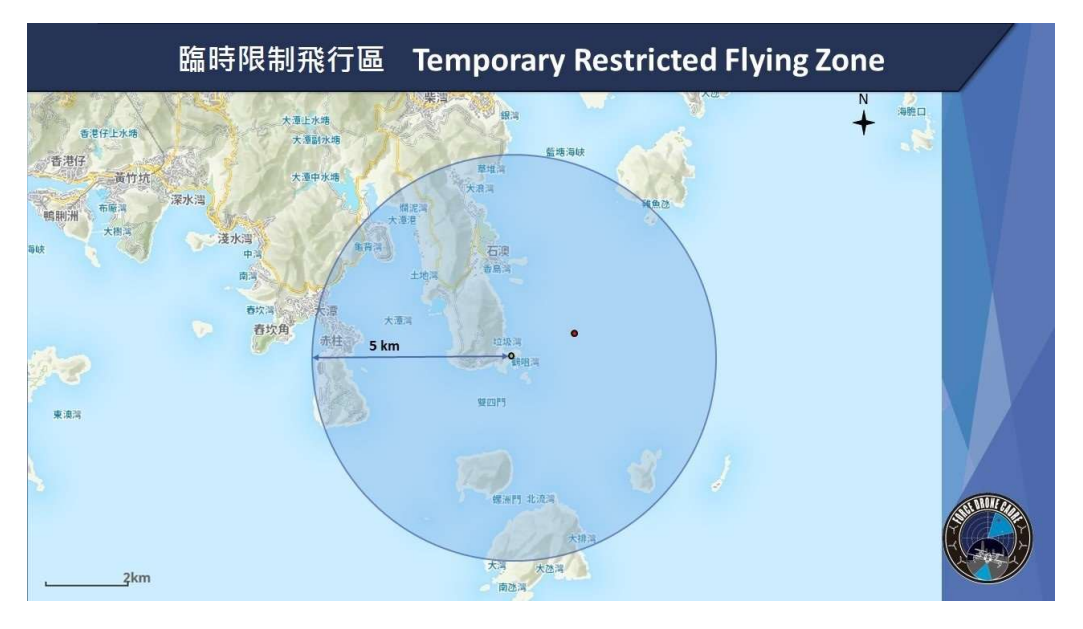 另外,由於處理水雷時將會發生巨響並可能會激起浪花,警方亦於今日中午12時起封鎖附近一帶山徑,禁止遊人走近,以策安全。鶴咀一帶範圍的空域亦會由明日早上9時至下午3時列為臨時限制飛行區。