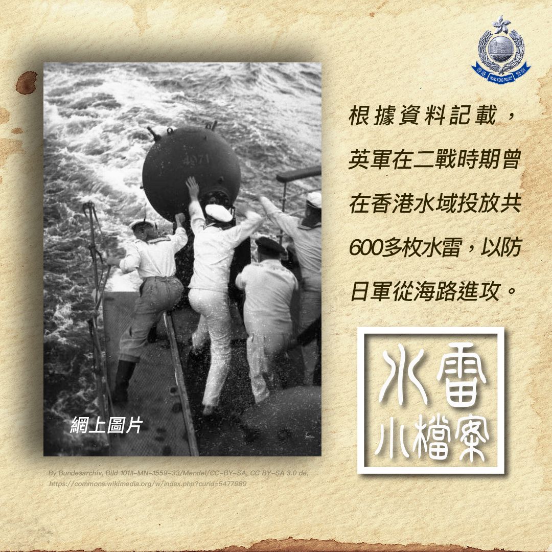 由於警方需要在水底處理水雷,海事處今日(8日)中午12時至明日行動結束期間起封鎖水雷位置方圓一公里內的水域範圍。封鎖期間,船隻不得駛進封鎖範圍。