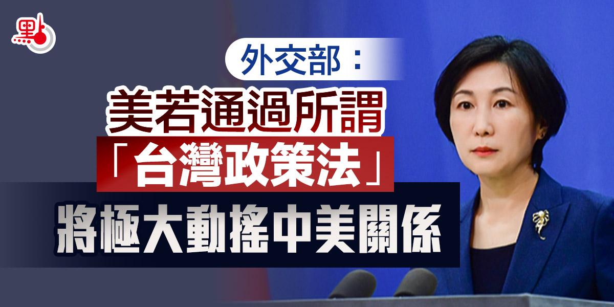 外交部:美若通過所謂「台灣政策法」將極大動搖中美關係