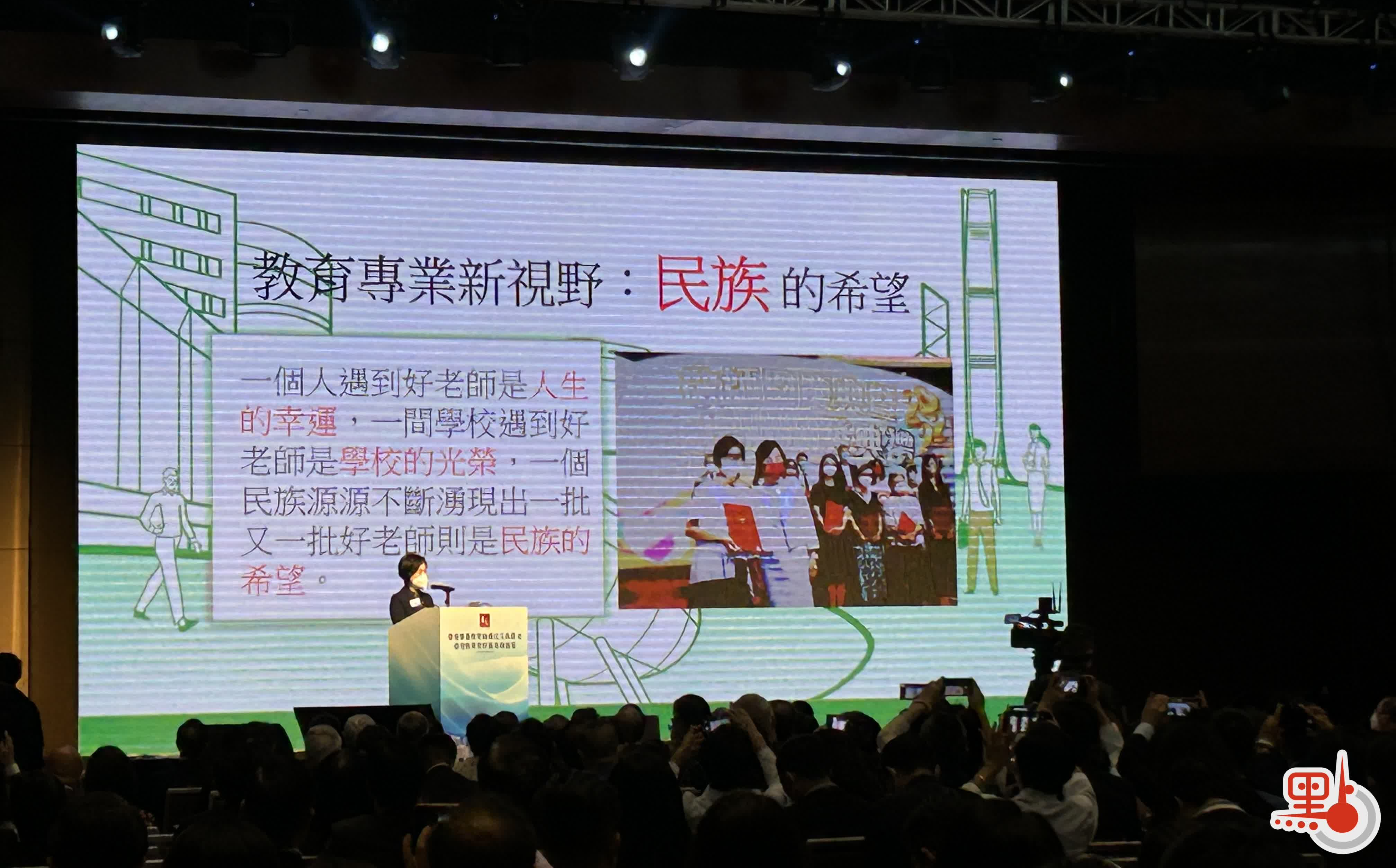 李子建的講題是「開啟香港學校課程新篇章」,他表示,開啟香港學校課程新篇章要做到開拓新元素新方向,「保」香港學校課程特點,增強愛國主義教育,減輕學校行政負擔四個方面。